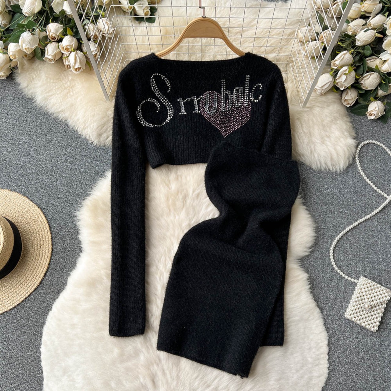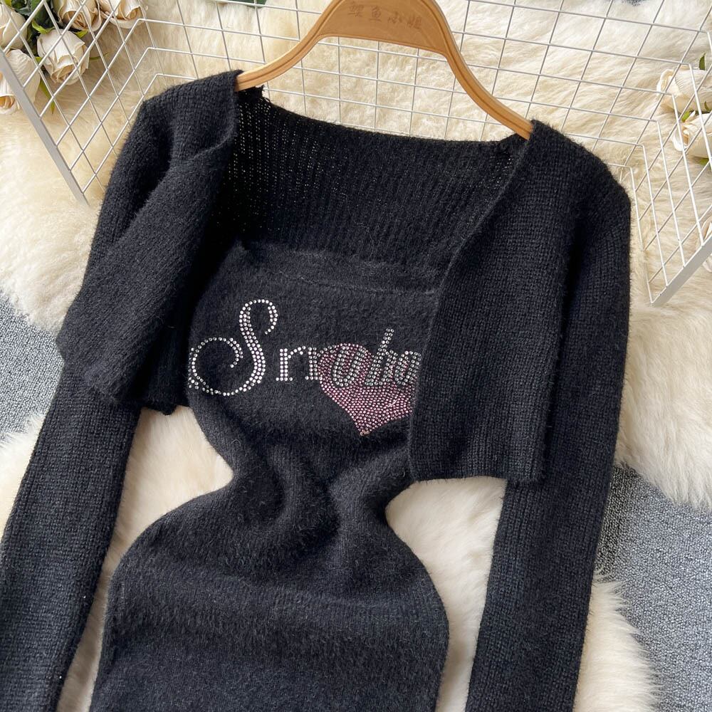 秋と冬のセクシーな風スーツ女性の短いショール カーディガン ジャケット + 文字チューブ トップ ドレス 2 点セット ショート オータム 秋物 ウィンター 冬物 lyxaj63801249339
