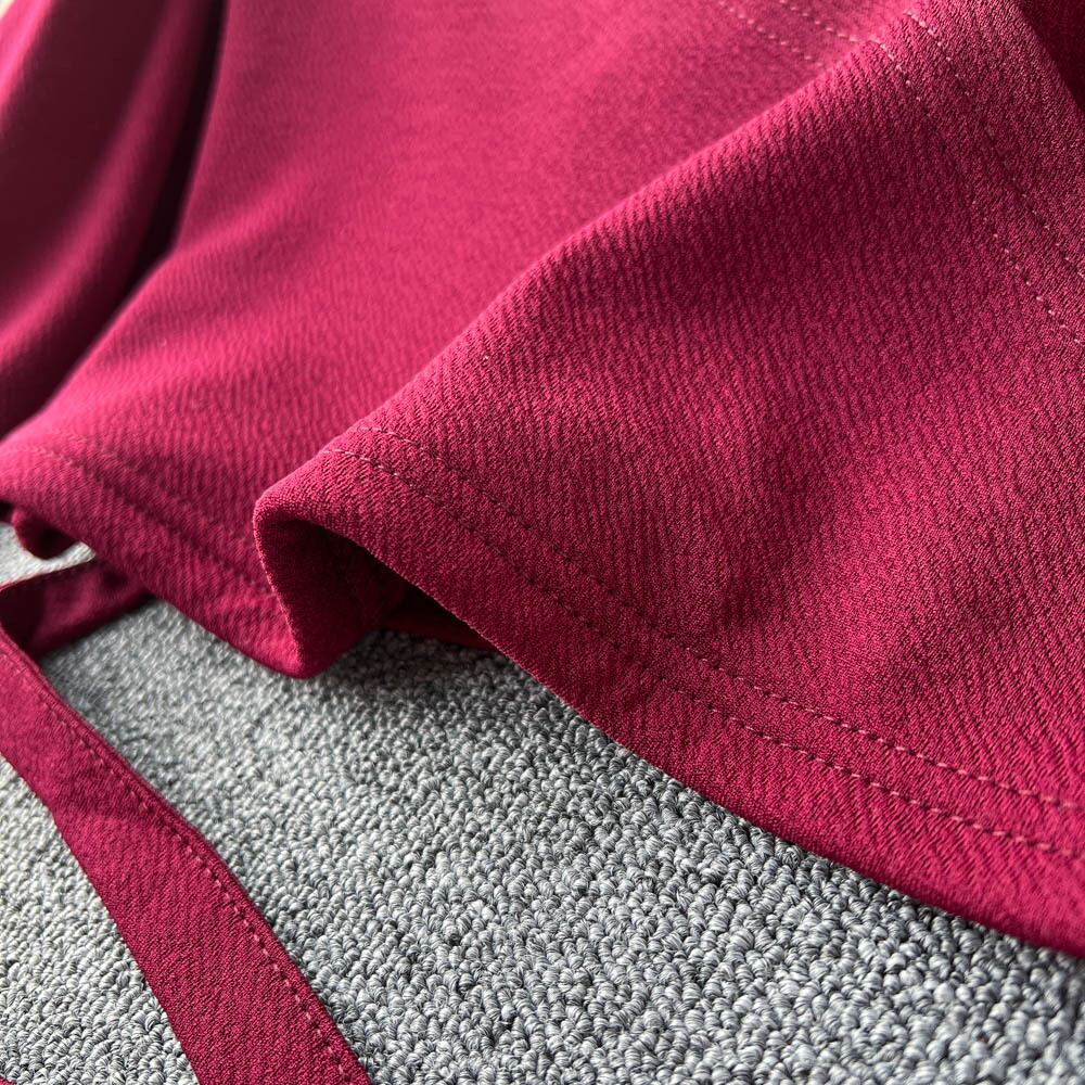 春秋 デザインセンス 巾着 ネクタイ Vネック ショート ラッパ袖 セクシー へそ 長袖 Tシャツ レディース シック トップス 潮 ロング スプリング 春物 オータム 秋物 lyxaj69505733902