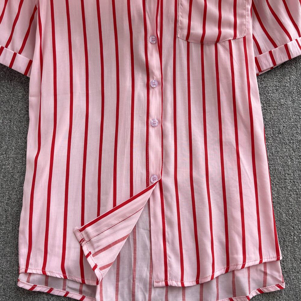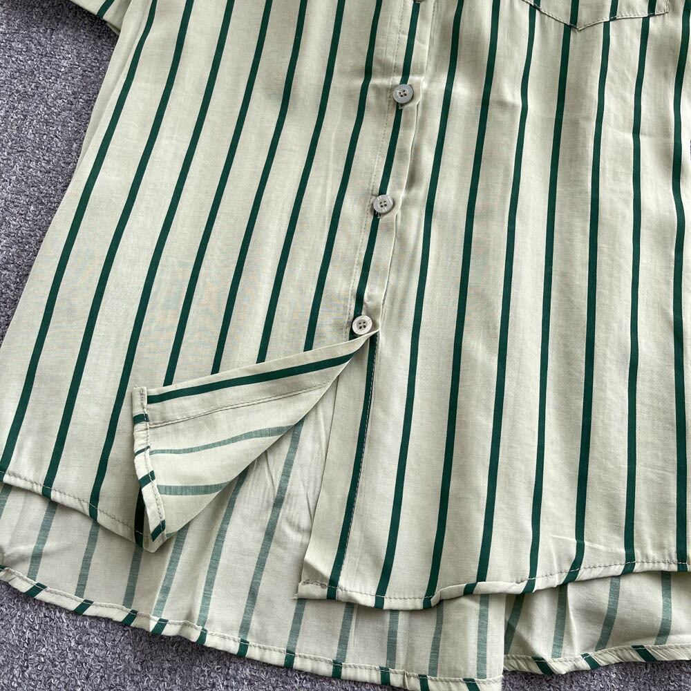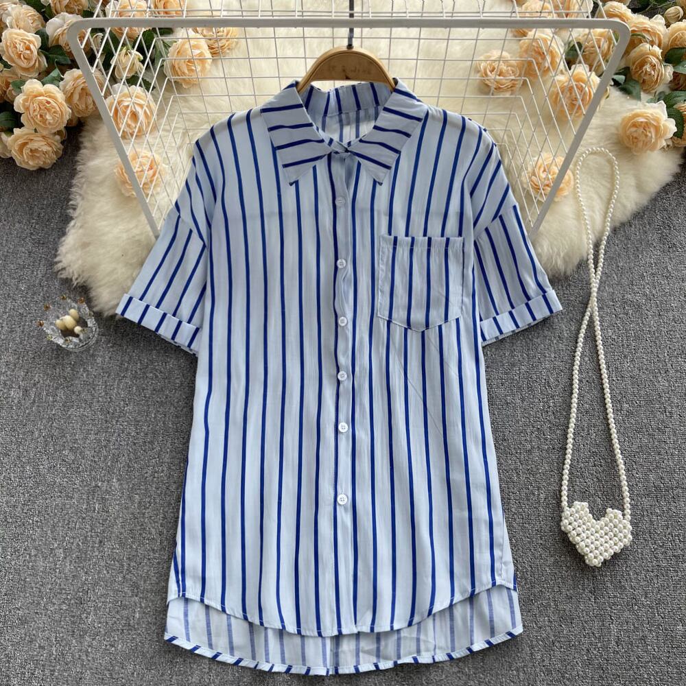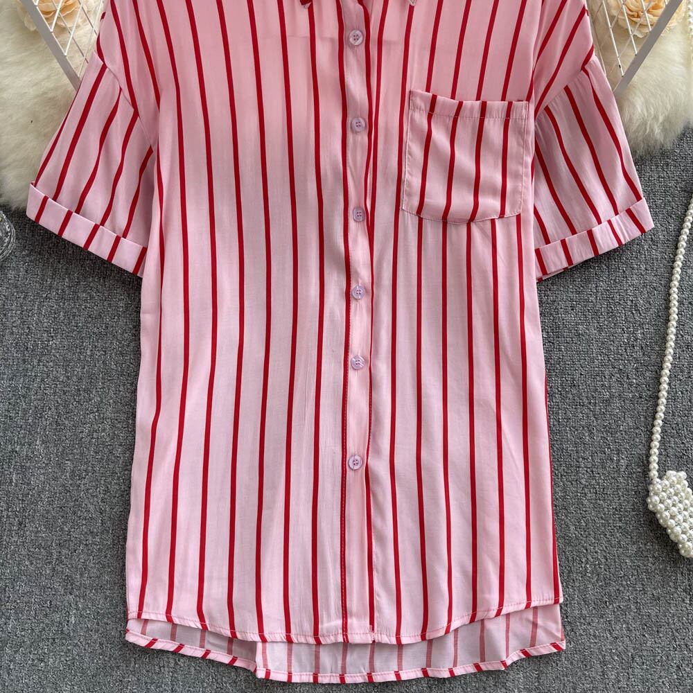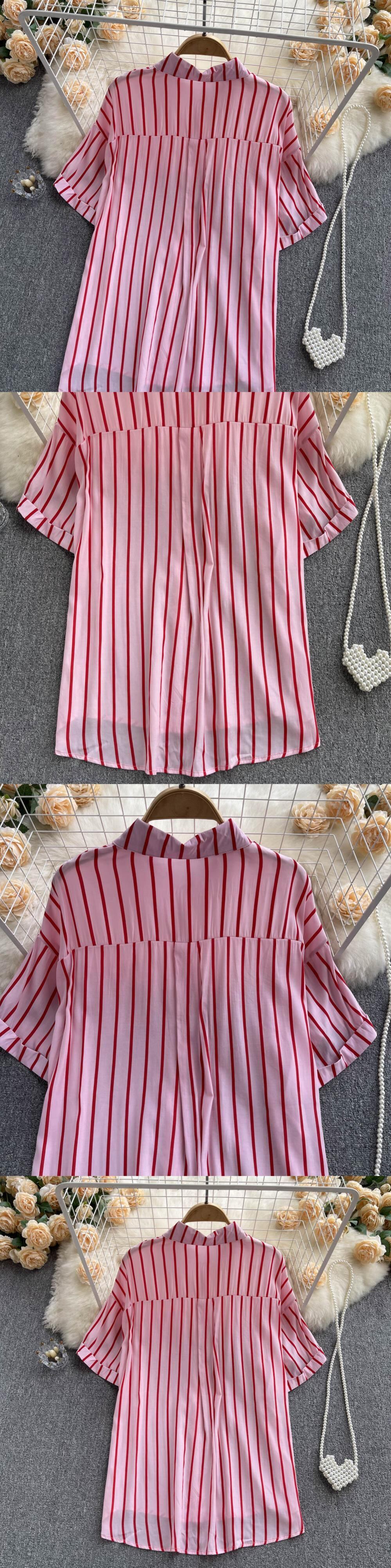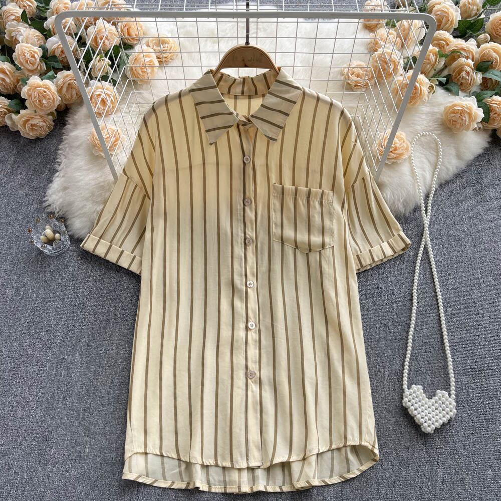 フレンチスタイル ゆったり ストライプ 気質 シャツ トップス 夏 レディース ハイセンス 個性的 キレイめ 小さめシャツ 万能 半袖シャツ トレンド サマー 夏物 lyxaj85064514202