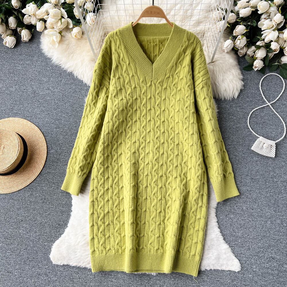 V ネックのセーターの女性の 2022 年秋と冬の新しい肥厚怠惰な緩いフレンチ レトロ ツイスト ニット ドレス オータム 秋物 ウィンター 冬物 Vネック lyxaj76437456543