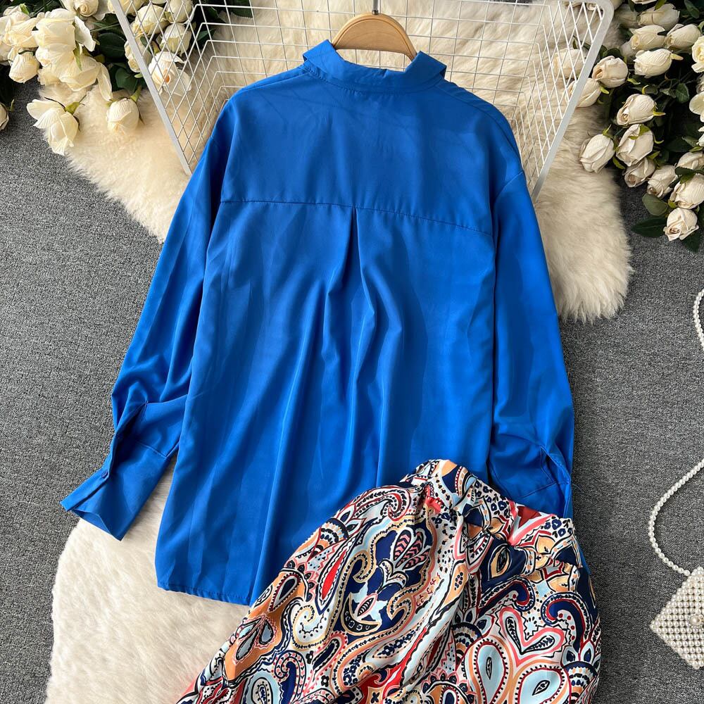 ヨーロッパとアメリカの春の新作スーツ女性のラペルゆったり長袖シャツ + 油絵プリント花柄スカート 2 点セット ロング スプリング 春物 ヨーロピアン lyxaj73438758386
