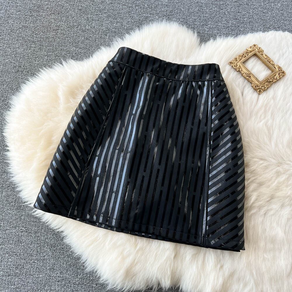 Yujie ライトおなじみのスタイル黒 PU レザー バッグ ヒップ スカート小さなスカート女性の秋のハイ ウエスト薄い A ライン スカート ハイウェスト ブラック オータム 秋物 Aライン lyxaj59253556256