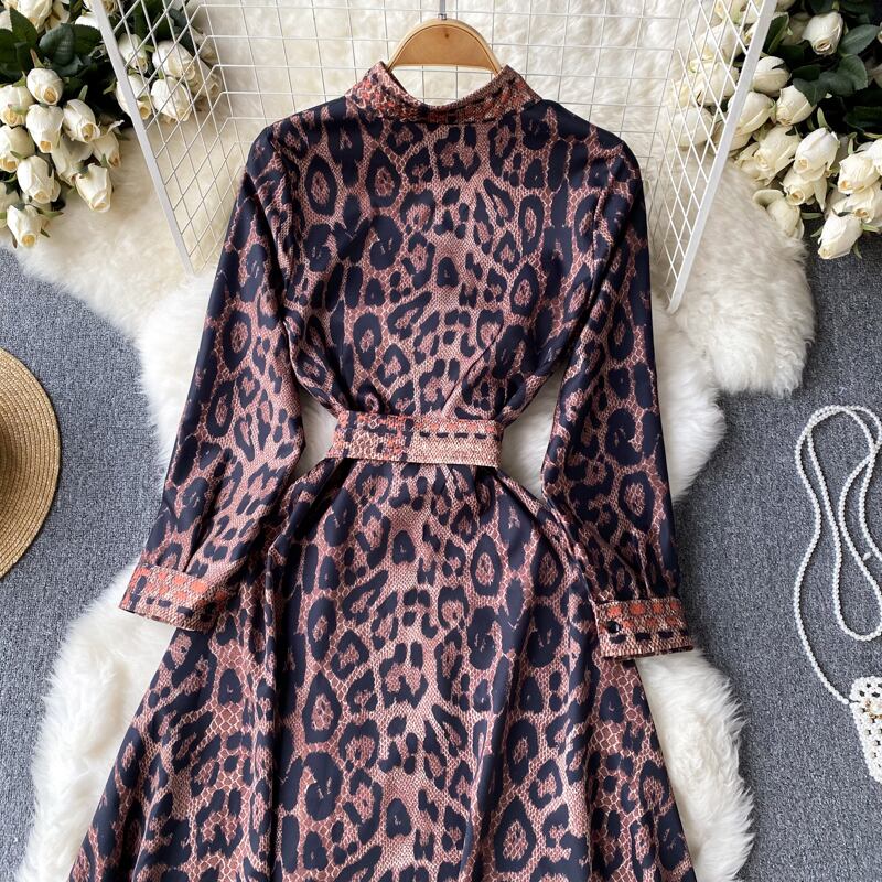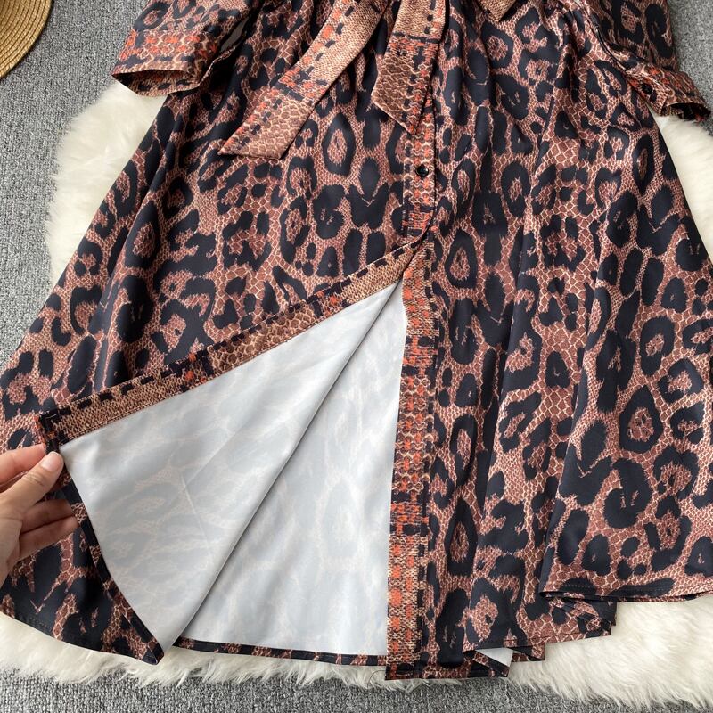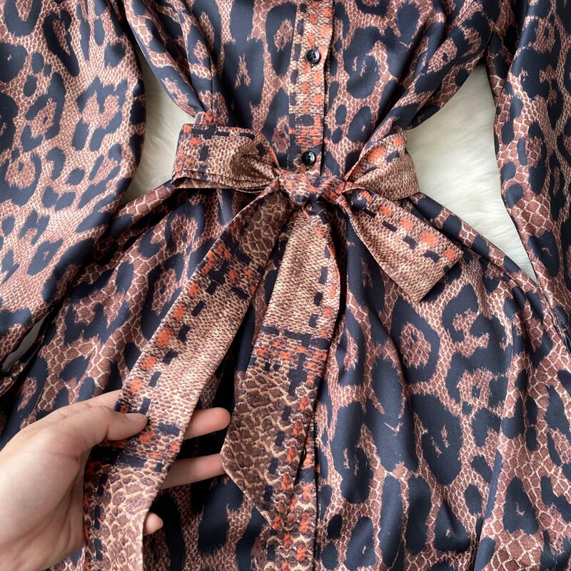 ヨーロッパとアメリカのファッション個性デザインセンス気質スリムウエスト痩身弓プリントヒョウ柄ドレス A ラインスカート リボン Aライン ヨーロピアン lyxaj4237188498