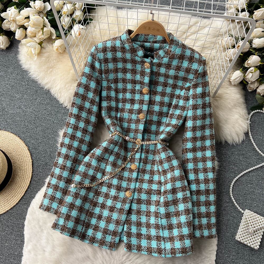 秋冬新作カジュアルオールマッチチェックシャツカーディガンレディースシングルブレストボタンデザインミドル丈レトロジャケットトレンディ オータム 秋物 ウィンター 冬物 lyxaj25575605189
