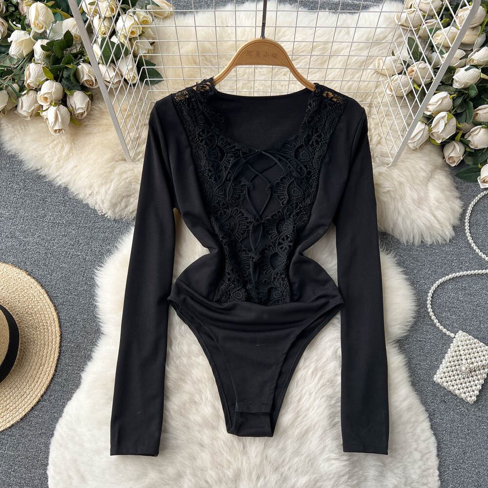 春と秋の新しい 2023 バージョンのレースの中空ネクタイ フレンチ レトロ ハイ k ジャンプスーツ ジャンプスーツ スプリング 春物 オータム 秋物 lyxaj85751498740