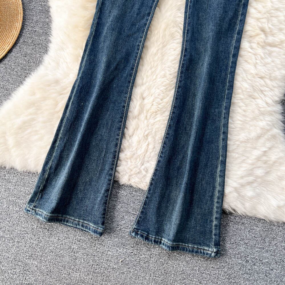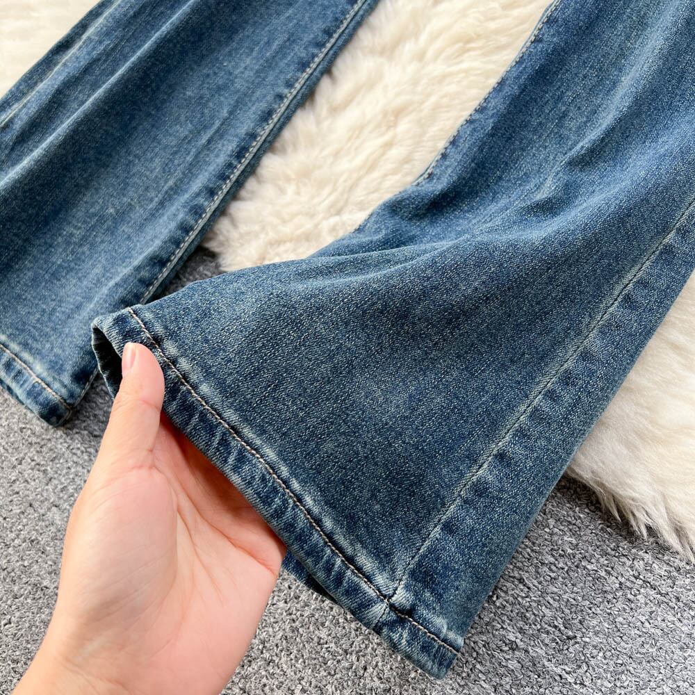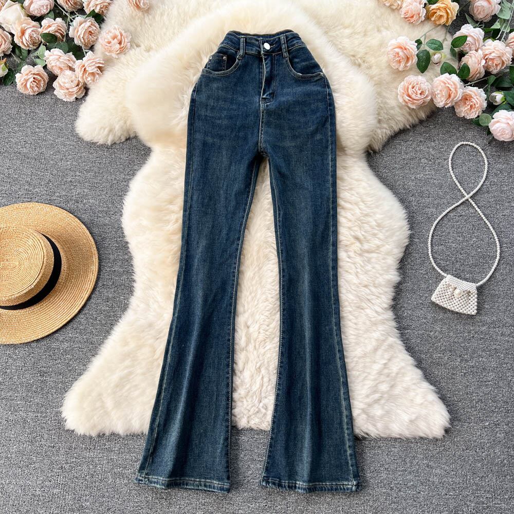 春秋新作ハイウエストジーンズレディースデザインセンスオールマッチ痩身フレアパンツフロアレングスパンツ レッド スプリング 春物 オータム 秋物 lyxaj11450380761