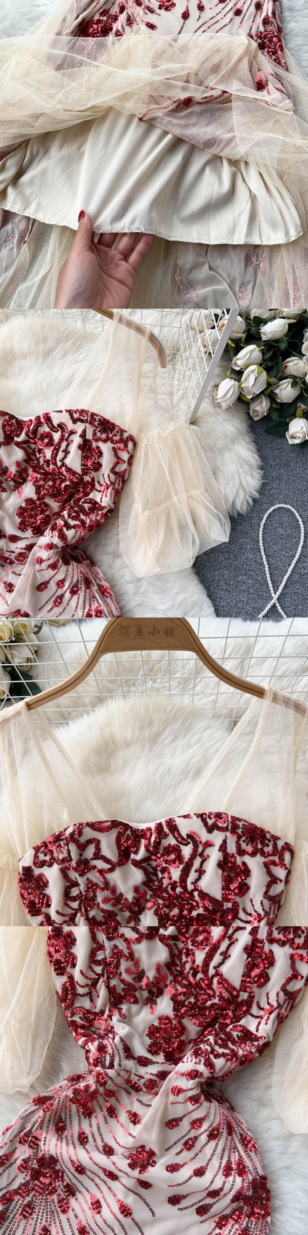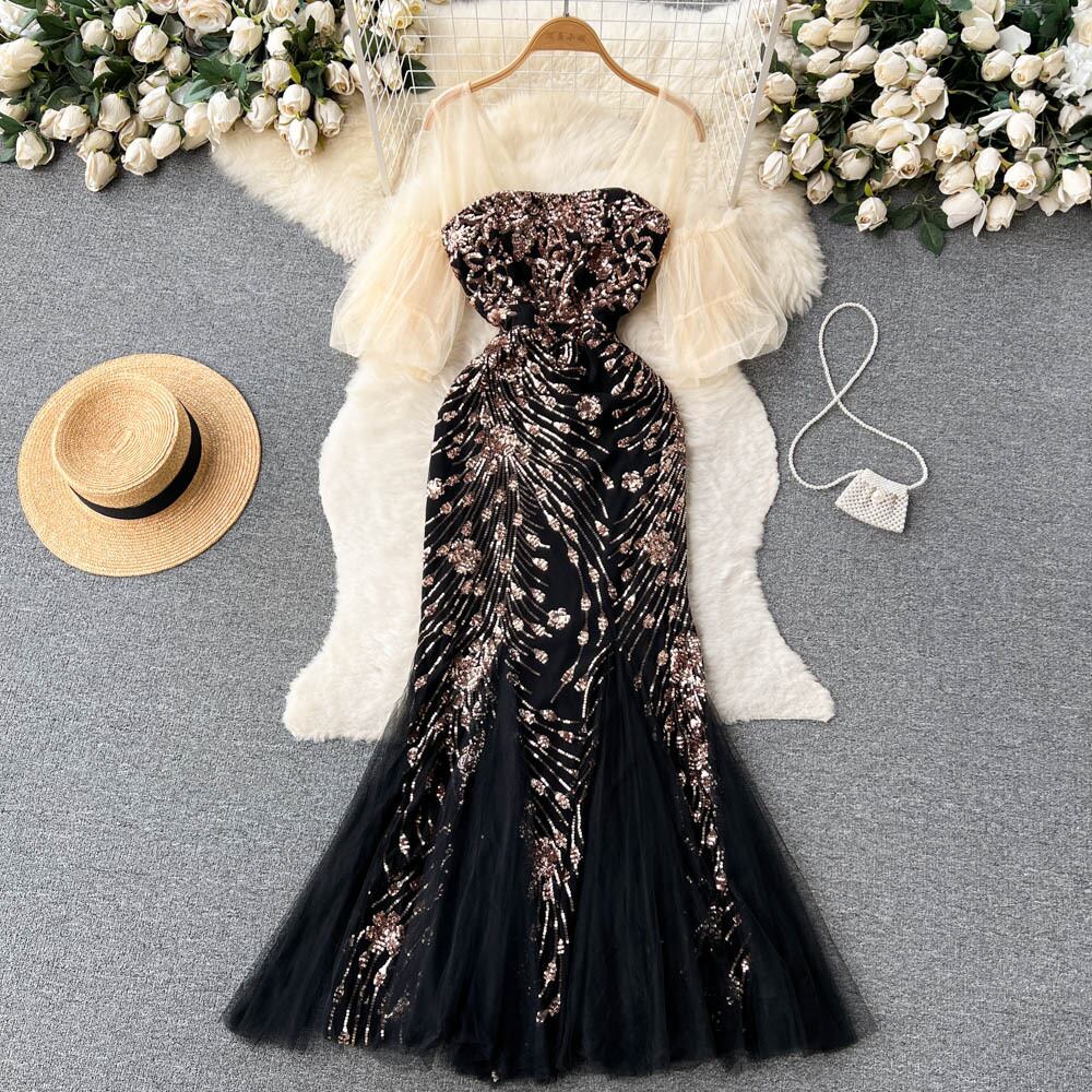 メッシュ新しいスプライシング気質有名人のスパンコール スリット イブニング ドレスの女性のバッグお尻高品質スリム フィッシュテール ドレス lyxaj63451176307