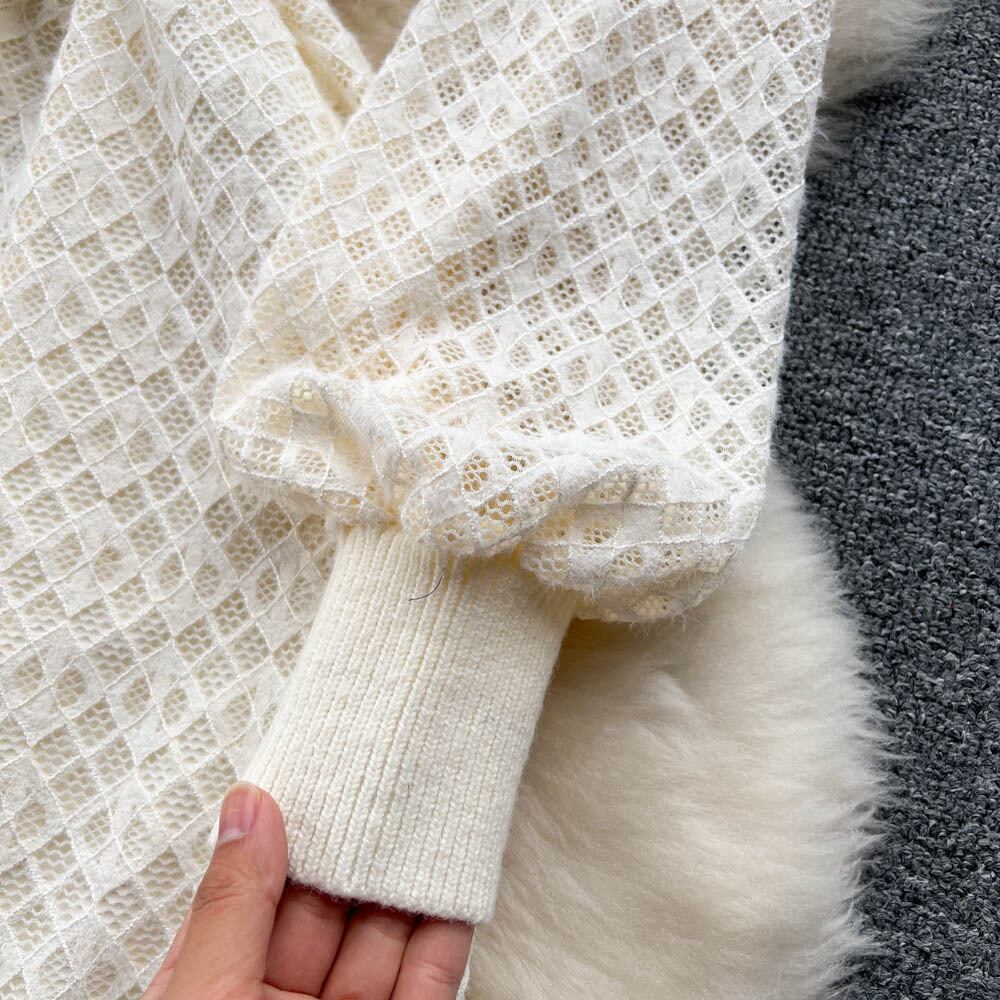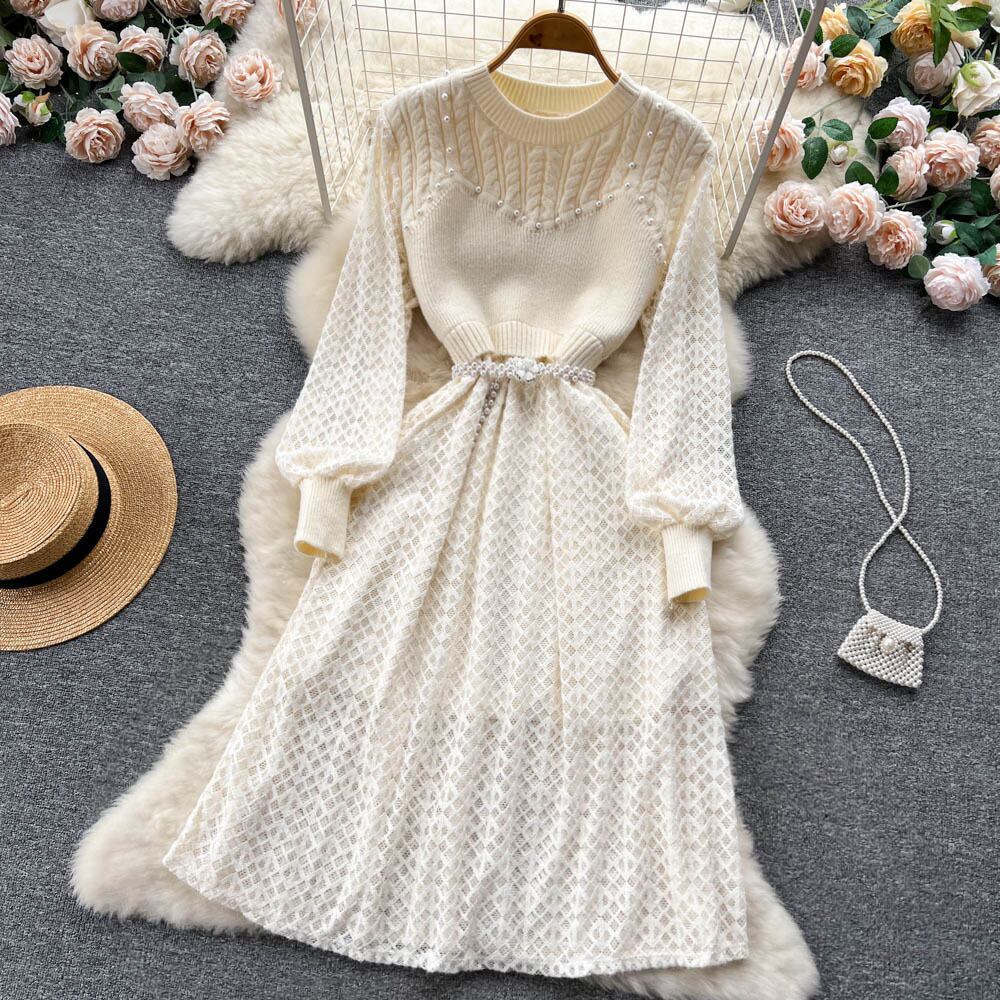 秋と冬の新しいデザインセンスビーズフレンチ気質レースステッチニットドレス女性有名人の気質の妖精のスカート オータム 秋物 ウィンター 冬物 lyxaj57391161808