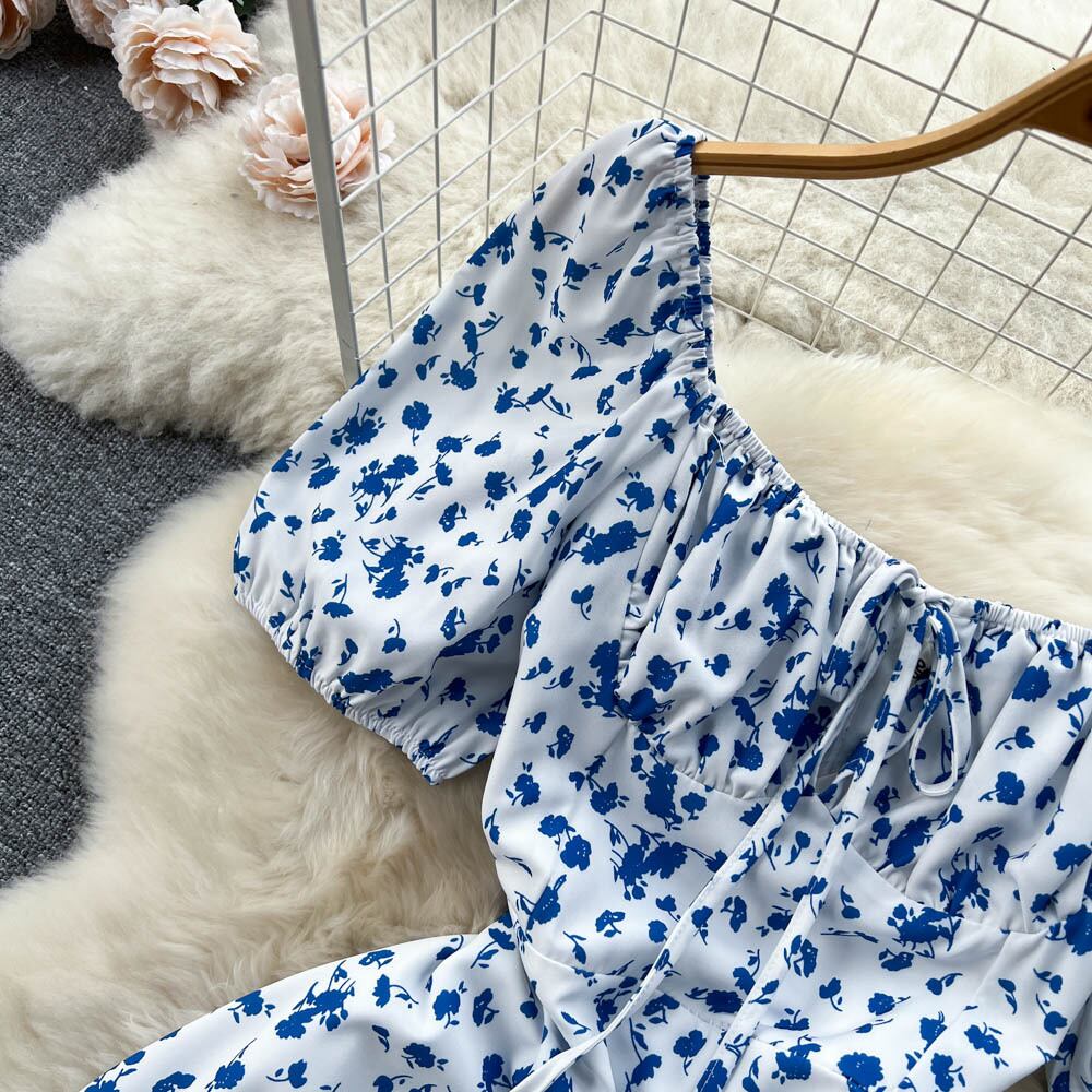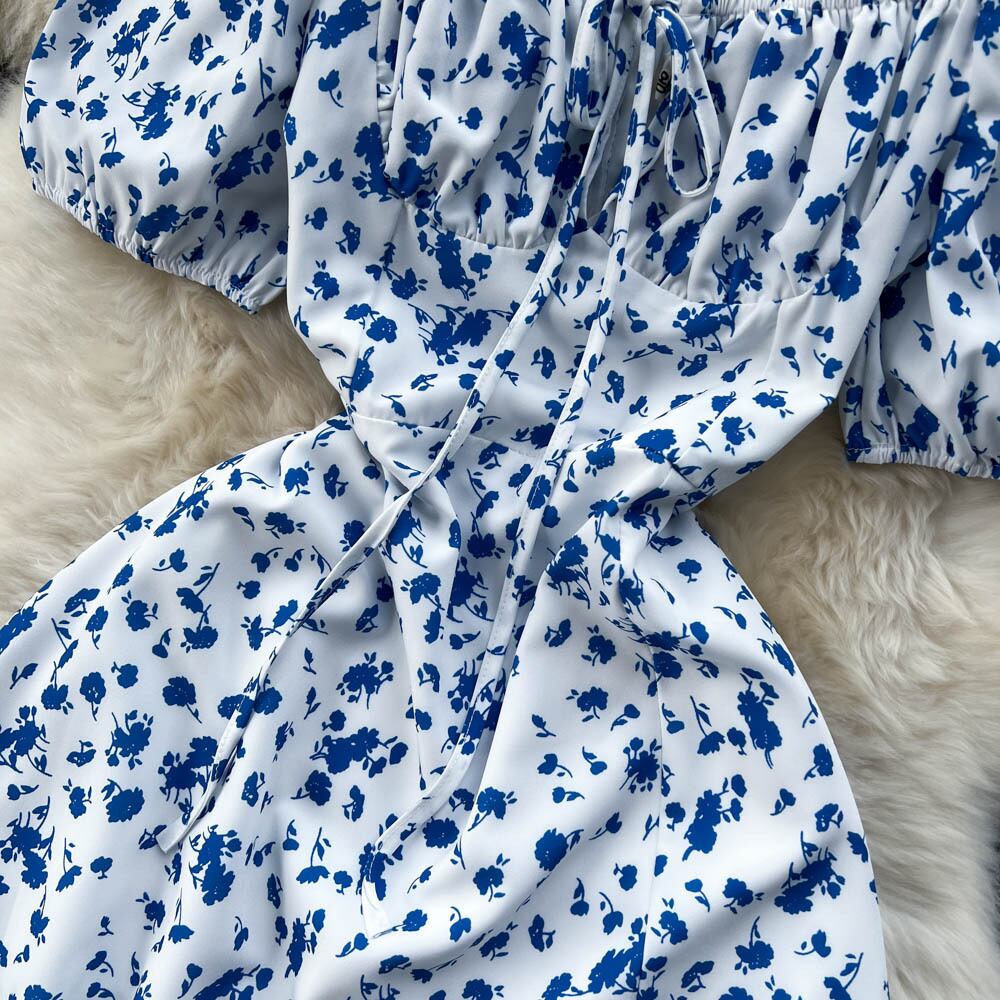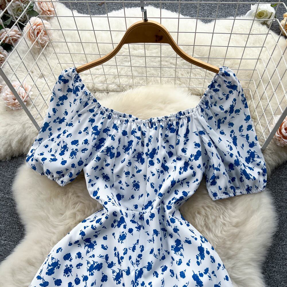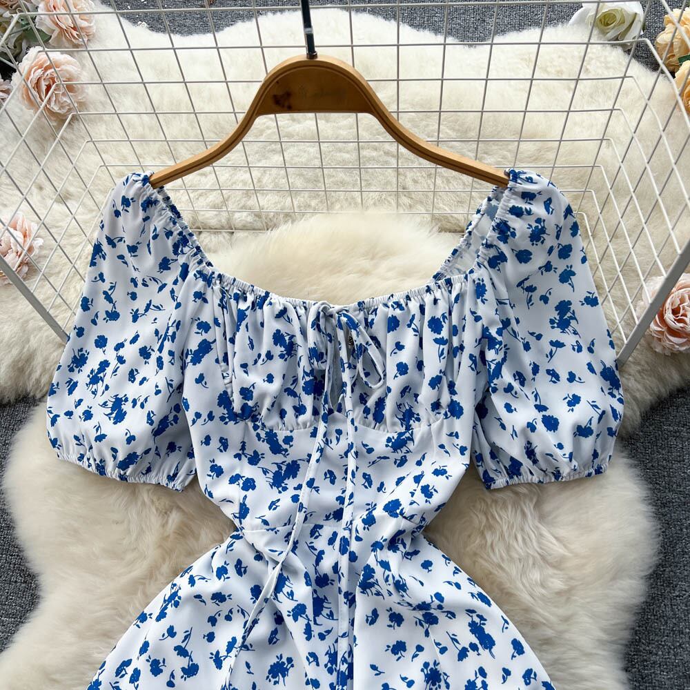フレンチ スクエアネック バブル 半袖 ウエストスリット 花柄 スリット ワンピース レディース 夏 レベル 初恋の妖精 Aラインワンピース サマー 夏物 スクウェア lyxaj79436062141