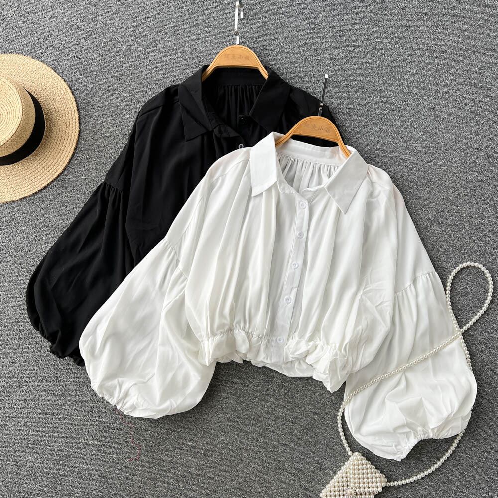 春夏新作気質ランタンスリーブラペルショートシャツ女性レトロデザインセンスニッチオールマッチシックシャツ スプリング 春物 サマー 夏物 lyxaj74993726833