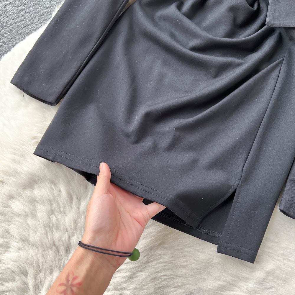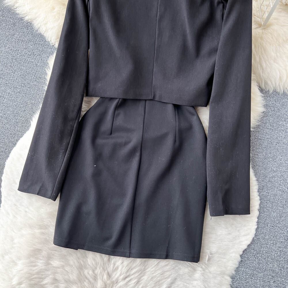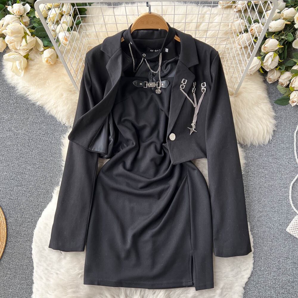 秋の新作長袖チェーンスモールスーツショートジャケット+スリットサスペンダードレスリトルブラックドレスツーピーススーツトレンディ ロング オータム 秋物 lyxaj51021065163