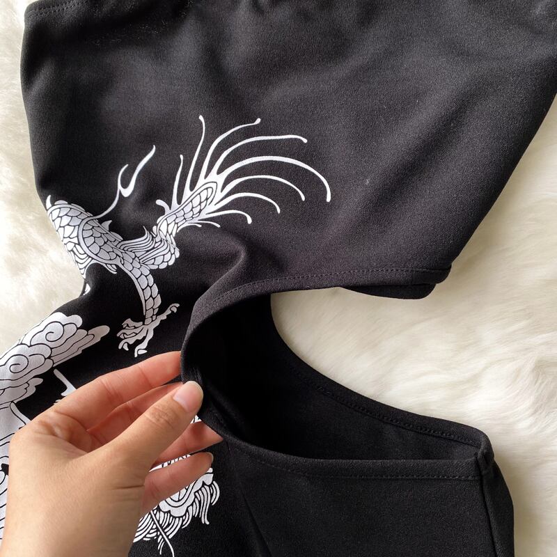 春と夏のレトロなチャイナ ドレス チューブ トップ一言襟のイブニング ドレス国家潮プリント中国風のスリット中空ドレス スカート スプリング 春物 サマー 夏物 lyxaj86172096586