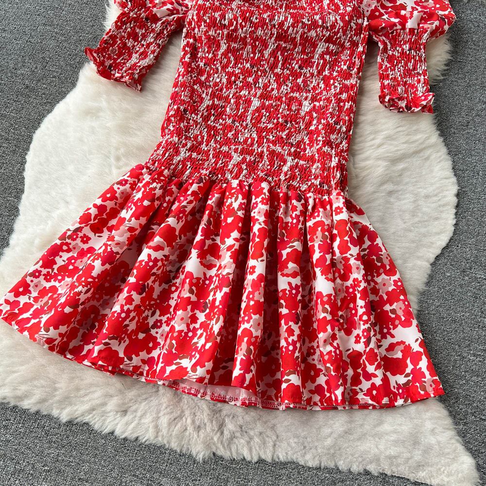 春と秋の新しい気質 V ネック プリント フィッシュテール ドレス女性のフレンチ レトロ花柄ウエスト バッグ ヒップ ロング スカート トレンディ スプリング 春物 オータム 秋物 Vネック lyxaj91158617270