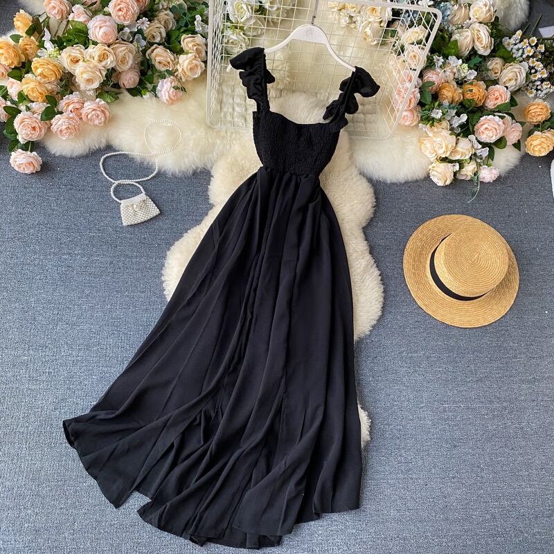 シックな優しい風ロングスカートの女性の夏の eign スタイルスリング弾性ウエストセクシーなスリットホリデードレス エラスティック 伸縮 サマー 夏物 lyxaj75534204766