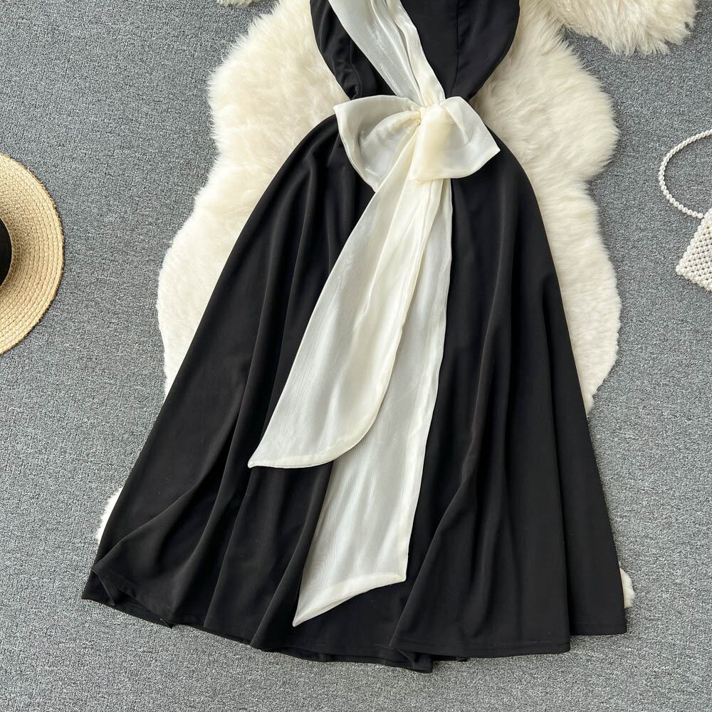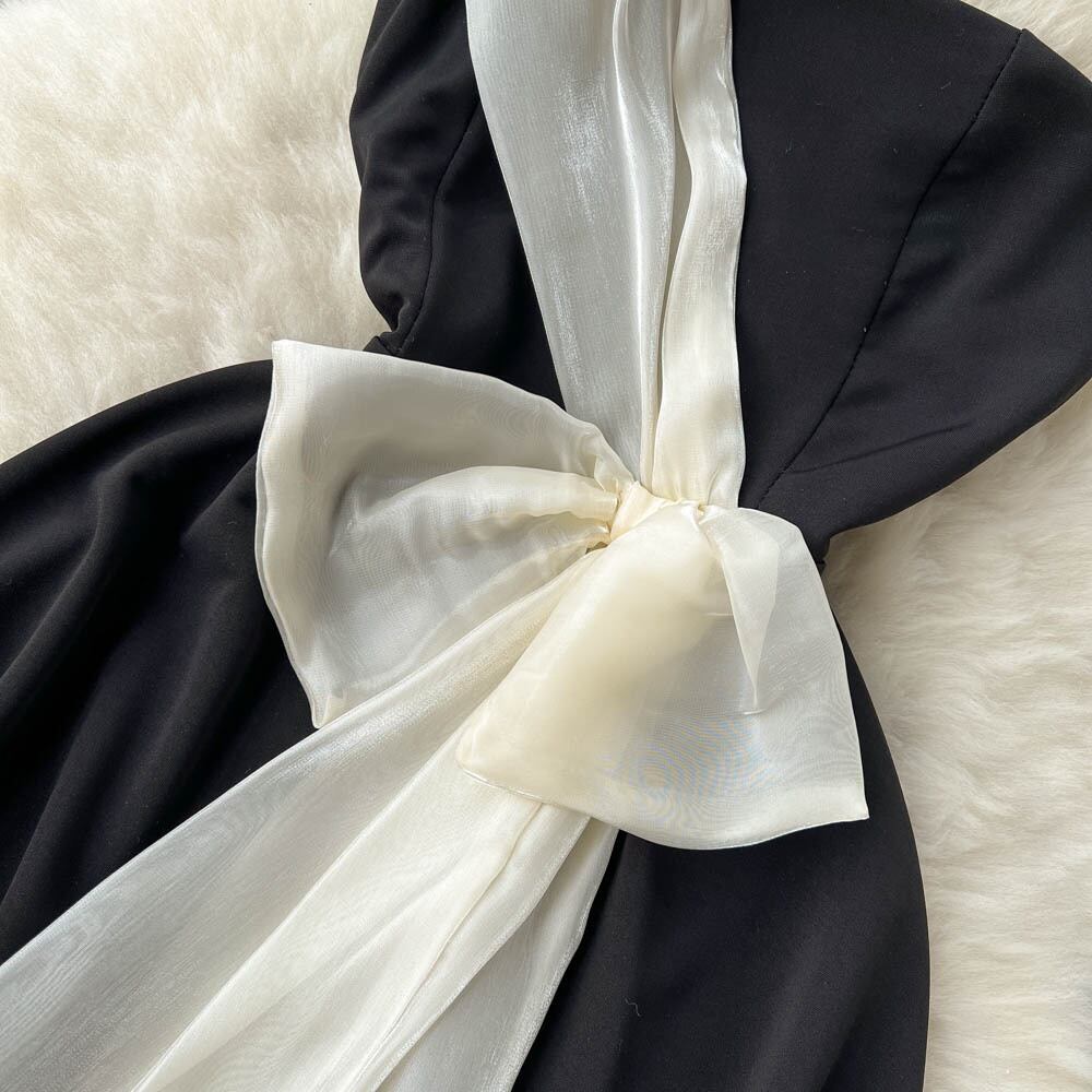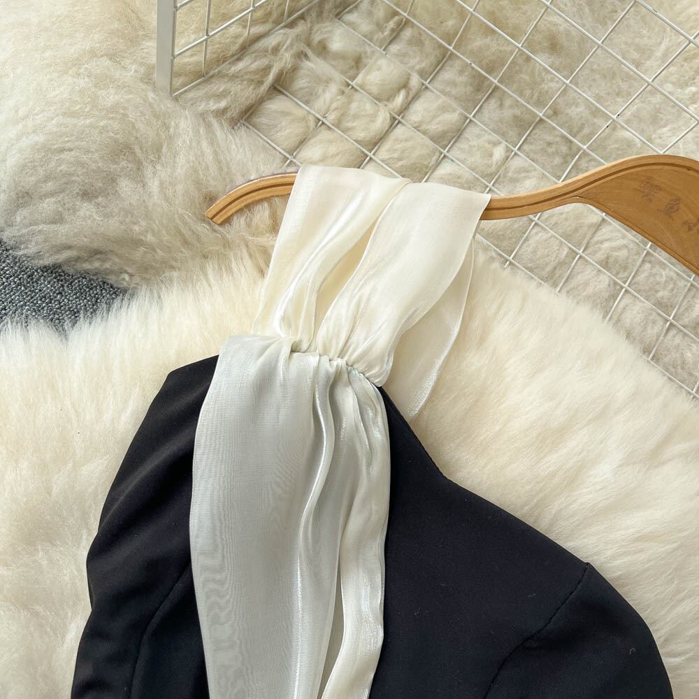 夏デザイン 斜めワンショルダー 白黒 コントラストカラー スリムウエスト Aライン プリンセススカート 女性 チューブトップ イブニングドレス ワンピース ホワイト ブラック サマー 夏物 lyxaj14026777972