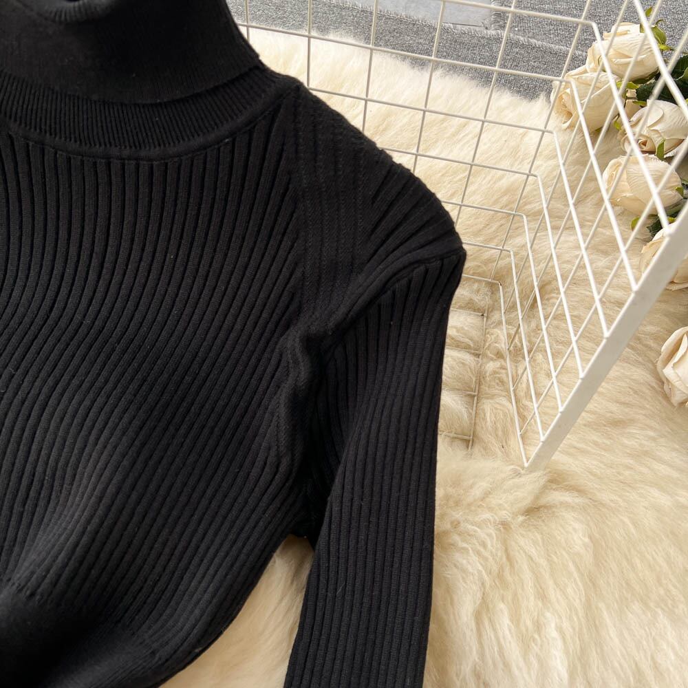 秋冬新作 ハイネック 厚手 インナーベース デザイン ストライプ プリーツ ニットワンピース レディース 膝上丈 ロングスカート トレンド オータム 秋物 ウィンター 冬物 lyxaj23360485112