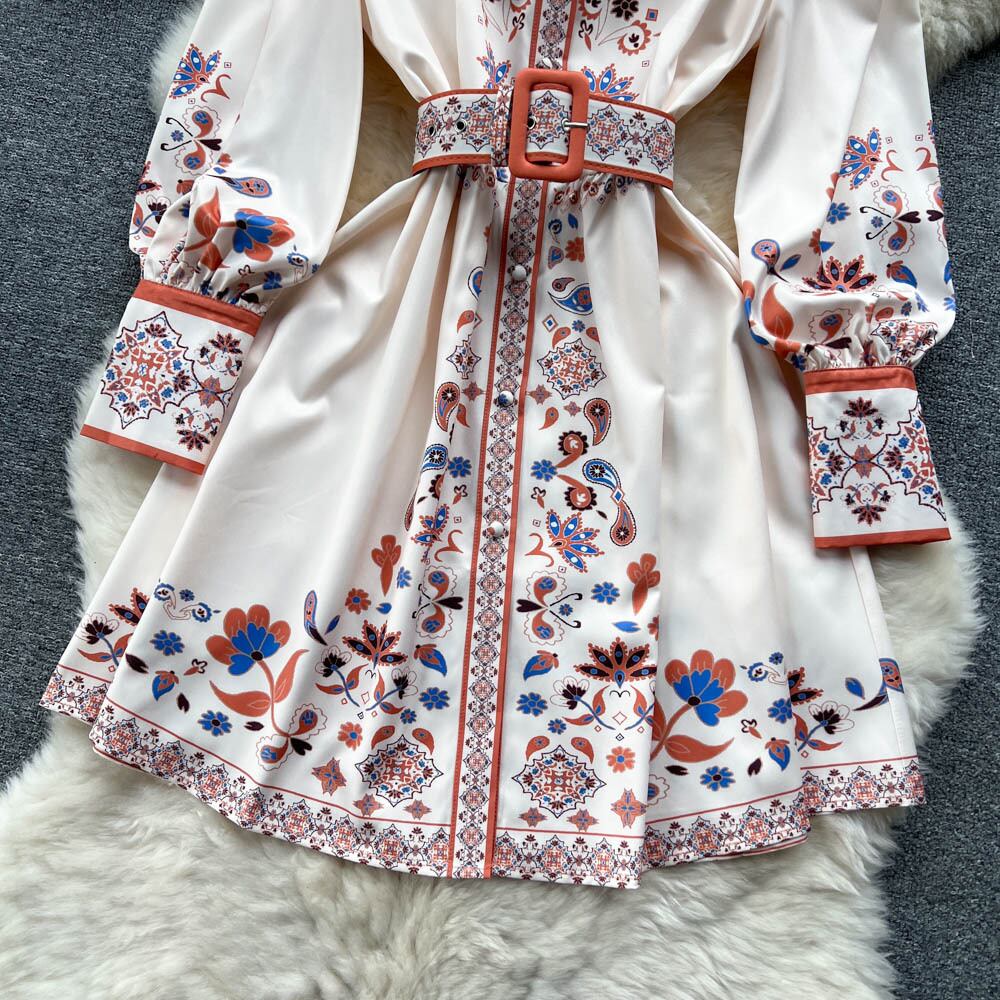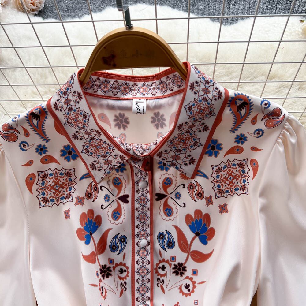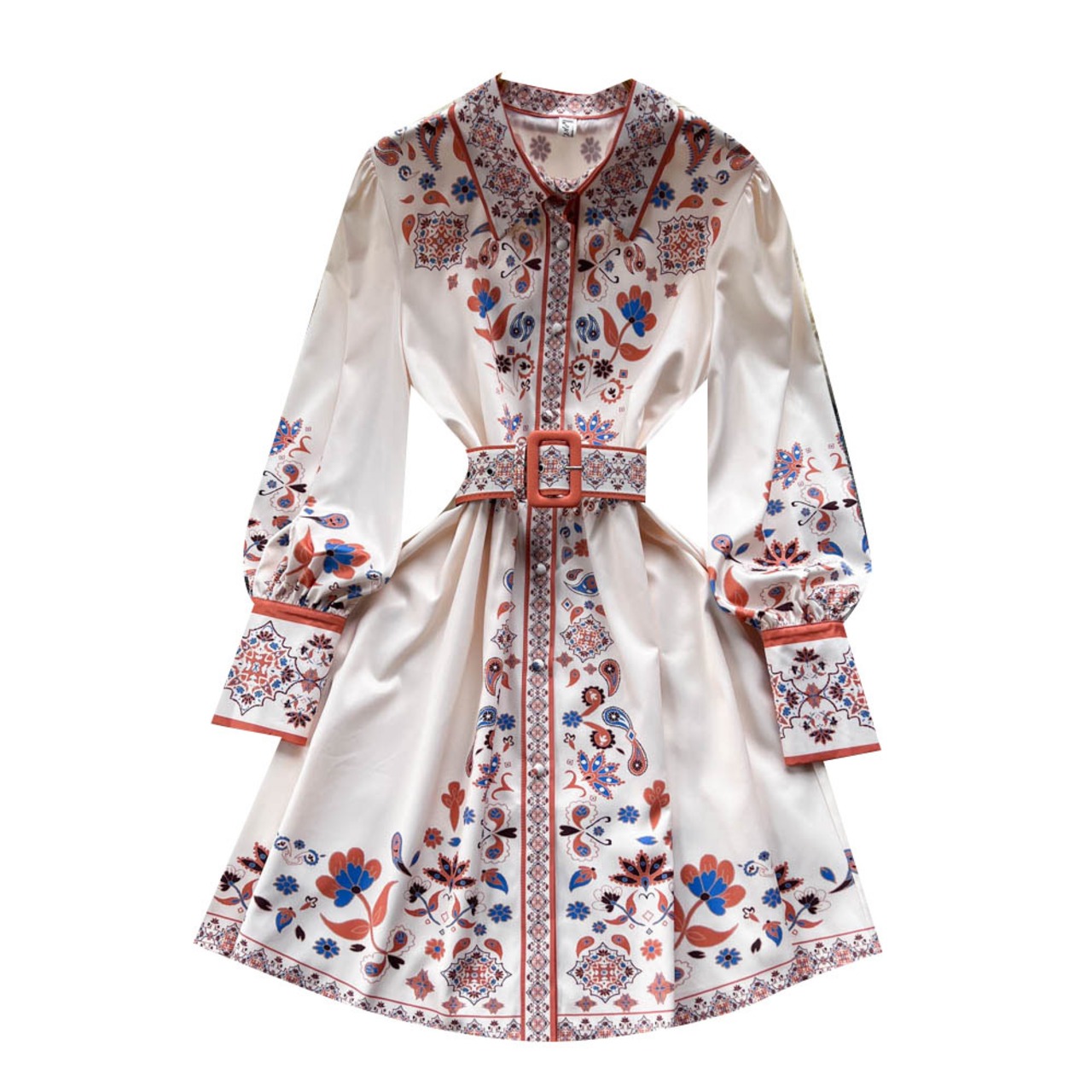 春の新スタイルラペル長袖ウエスト痩身レトロコートスタイルヨーロッパとアメリカインプリントシャツドレス女性 ロング スプリング 春物 ヨーロピアン lyxaj62064567931