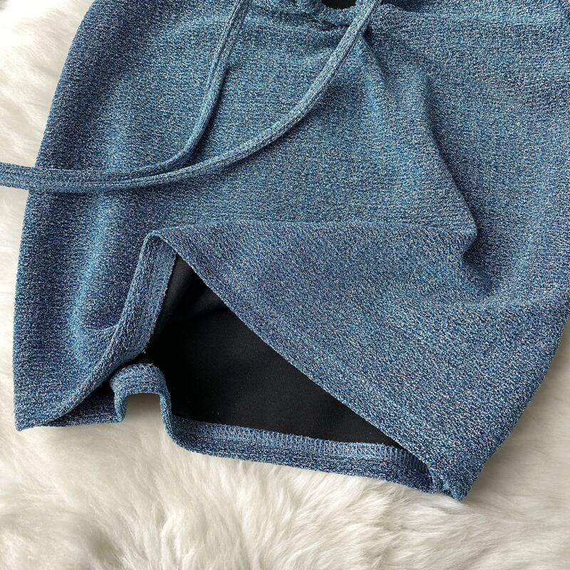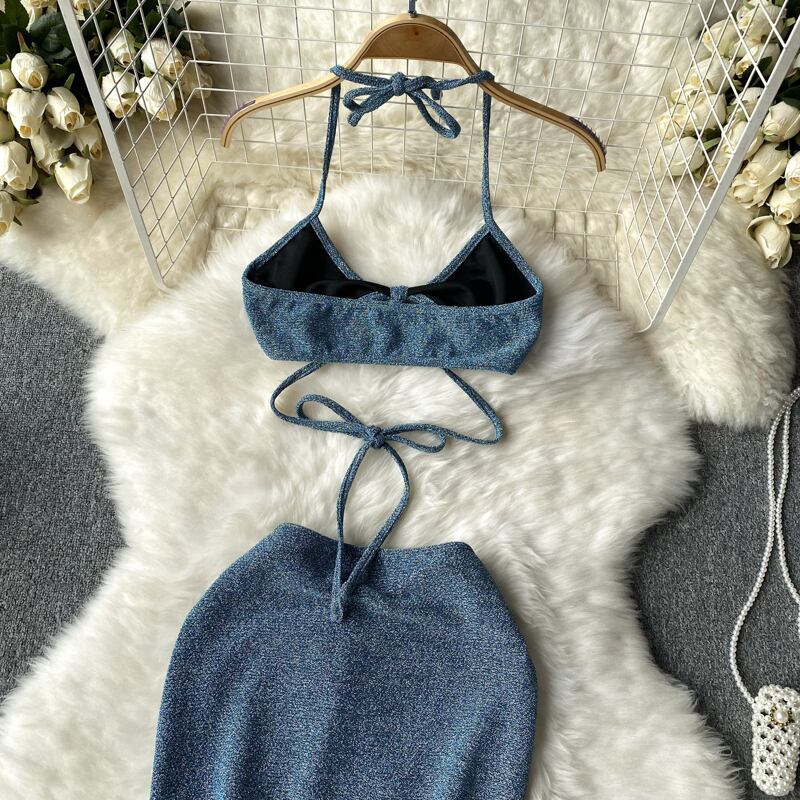 夏のセクシーなスパイスガールスタイルのスーツの女性のホルターネックストラップショートチューブトップ + ヒップ巾着スカート 2 点セット サマー 夏物 lyxaj25226784814