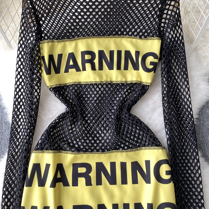 ヨーロッパとアメリカのinsスタイルのパーソナライズされたレターパッチ中空長袖ミッドレングスのセクシーなスリムドレスとヒップとウエスタンスタイルの女性 ロング ヨーロピアン lyxaj10273055888