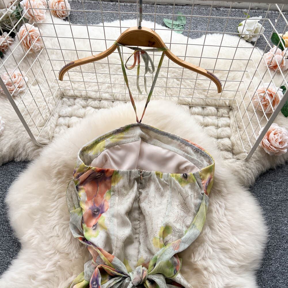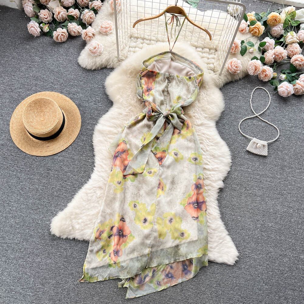 夏の新しい中国風のレース吊りネック痩身レトロなデザイン センス ニッチ レトロな不規則なスリング プリント ドレス サマー 夏物 lyxaj55730122561