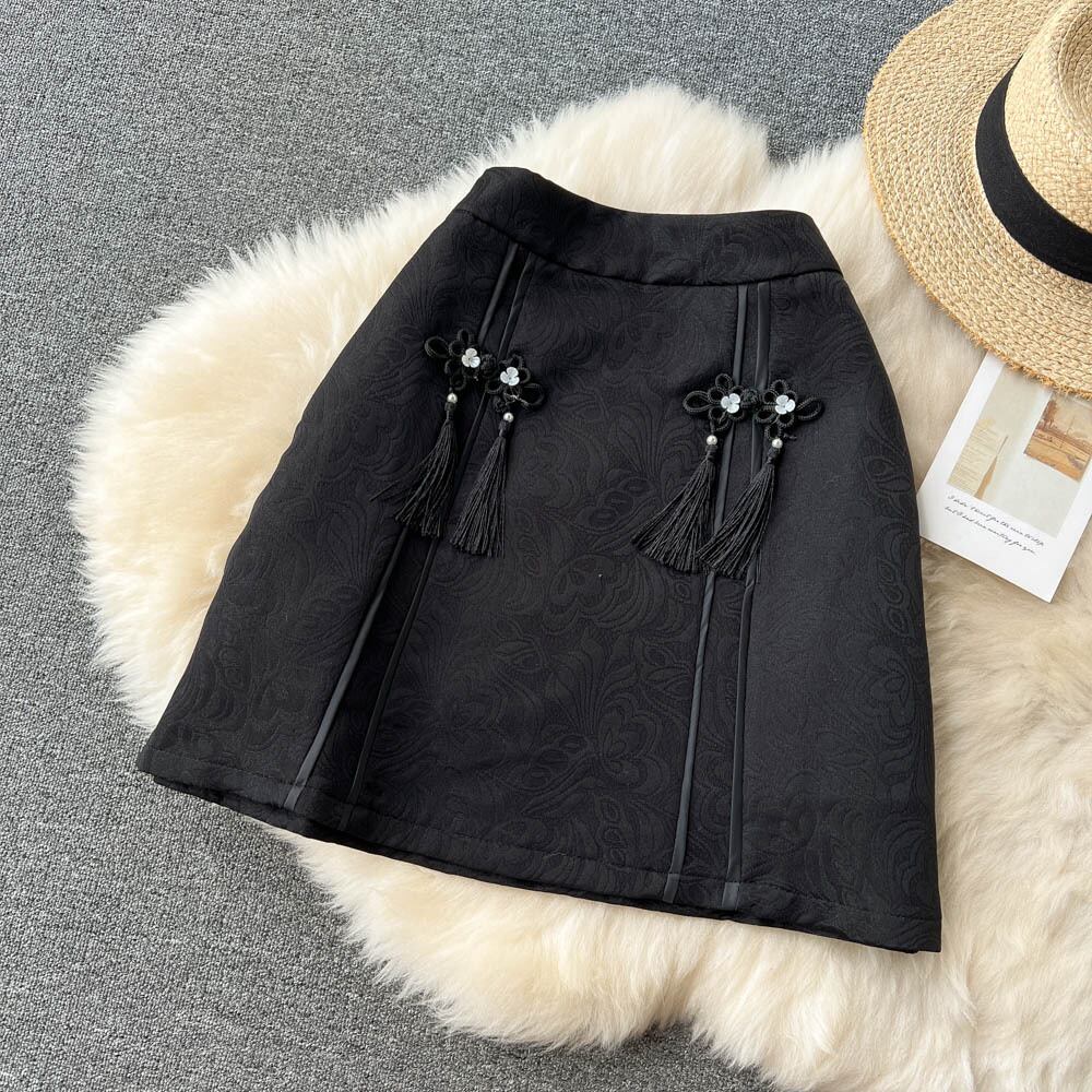 レトロなバックル高品質のジャカード A ライン スカート女性の夏のドレス 2022 新バージョン甘いオールマッチ気質スカート 大人ガーリー スウィート キュート カジュアル サマー 夏物 Aライン lyxaj39659922170