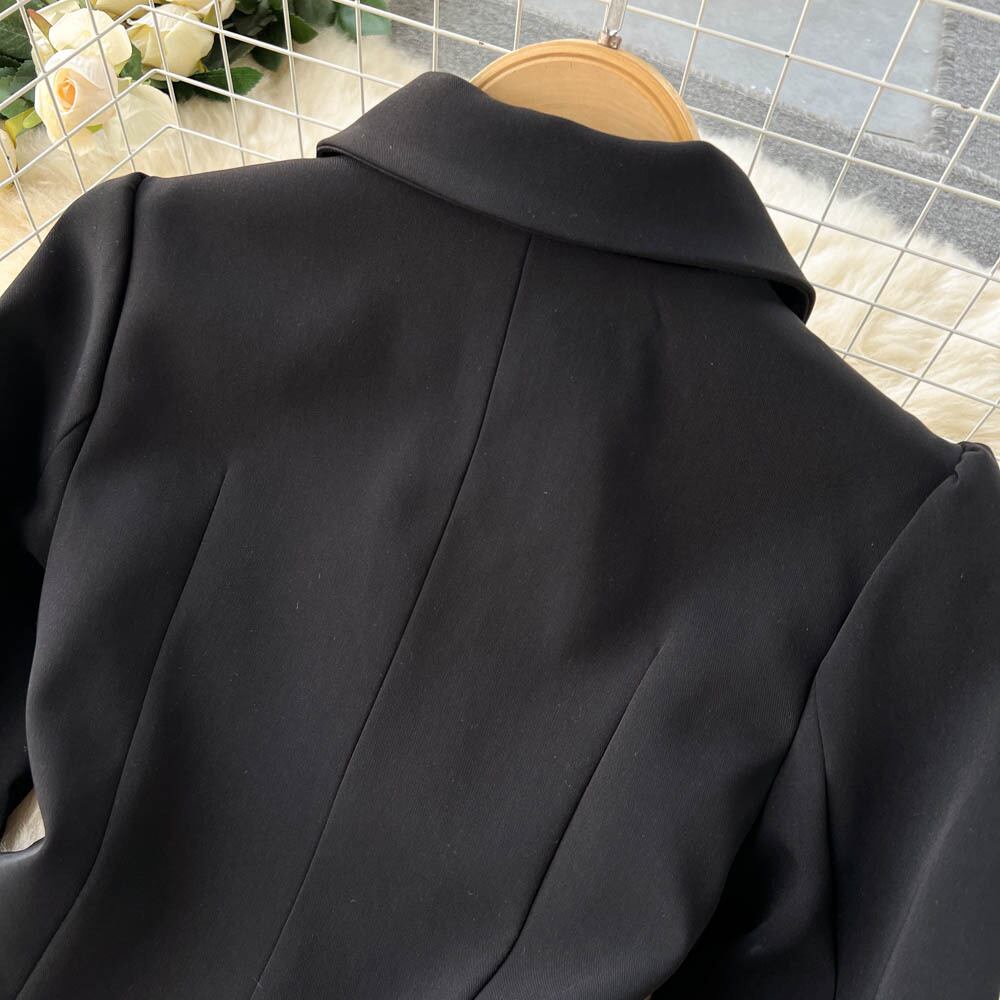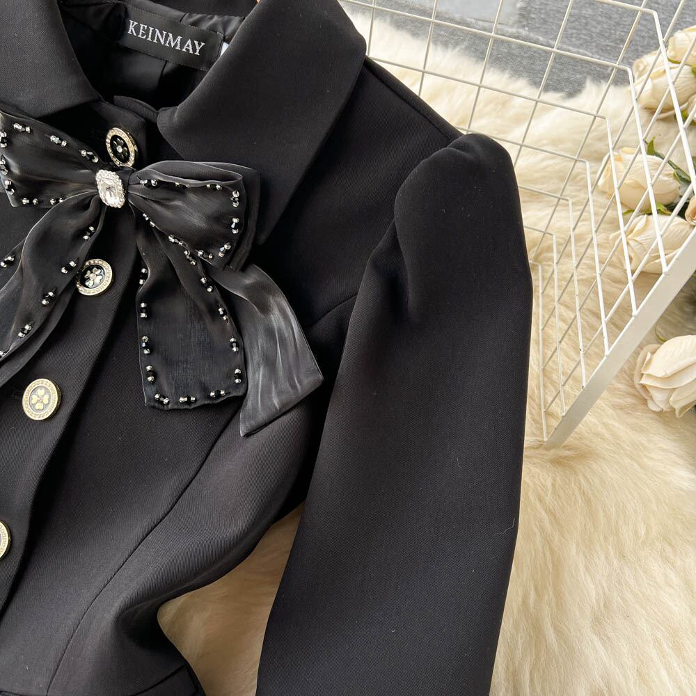 秋のカレッジスタイルのスーツの女性の蝶結びの不規則なショートスーツのジャケット+ミドル丈のスカートの2点セット リボン オータム 秋物 lyxaj7807575373