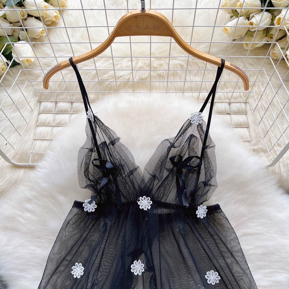 純粋な欲望スタイル深い V ローカット背中の開いた薄いセクション セクシーなサスペンダー ナイトドレス女性の夏のスタイルは、透明なパジャマ スカートの外に着用することができます。 サマー 夏物 lyxaj86521966148