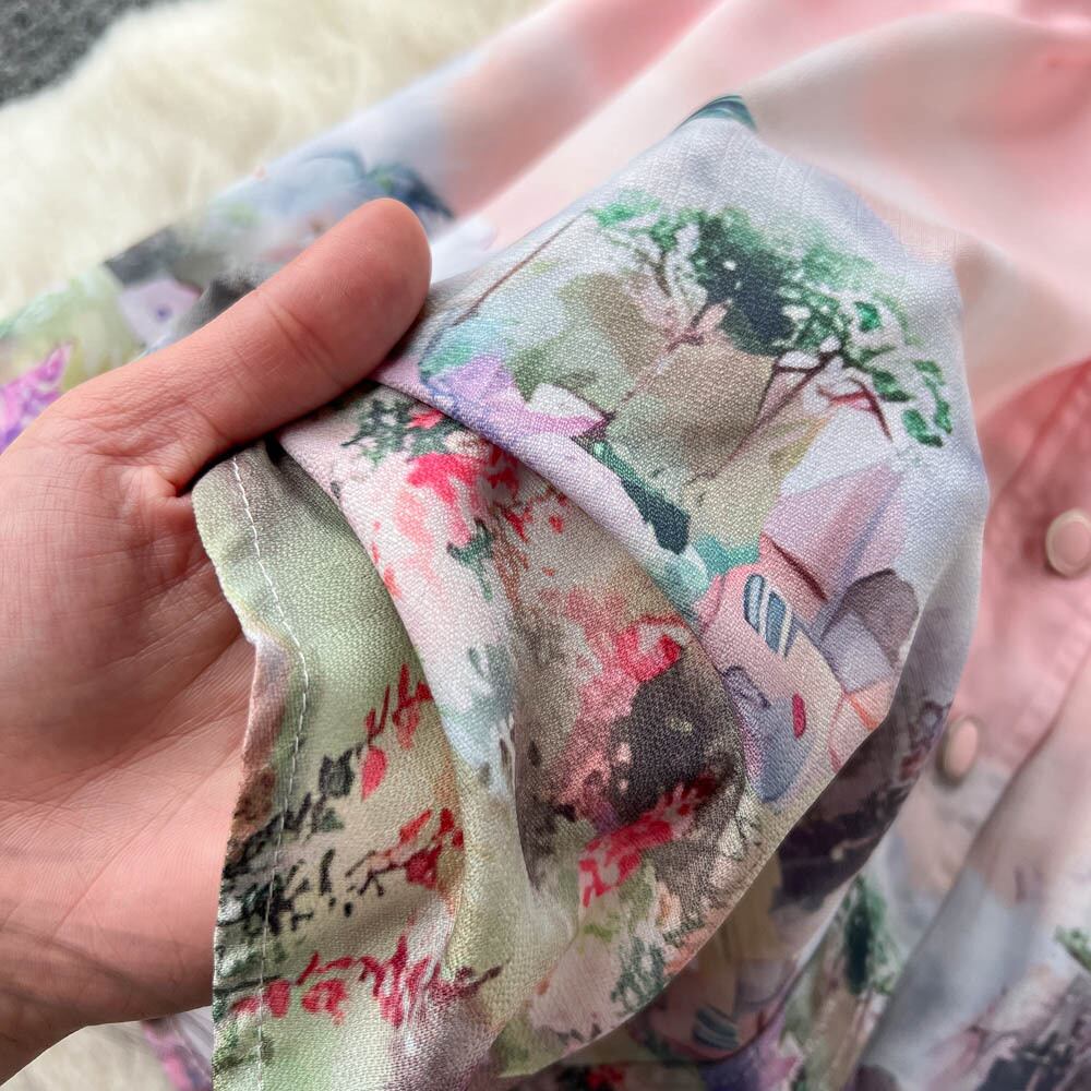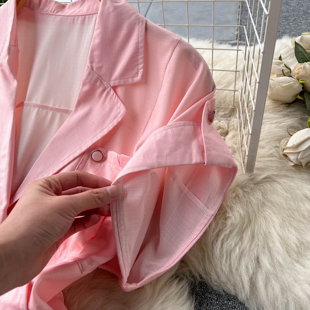2023 夏新ラペル半袖シングルブレストボタンウエストスカート女性のプリントスリムレトロフレンチドレス潮 サマー 夏物 lyxaj16516548049