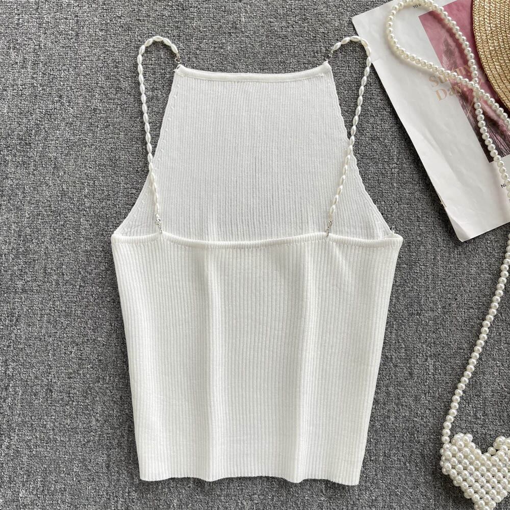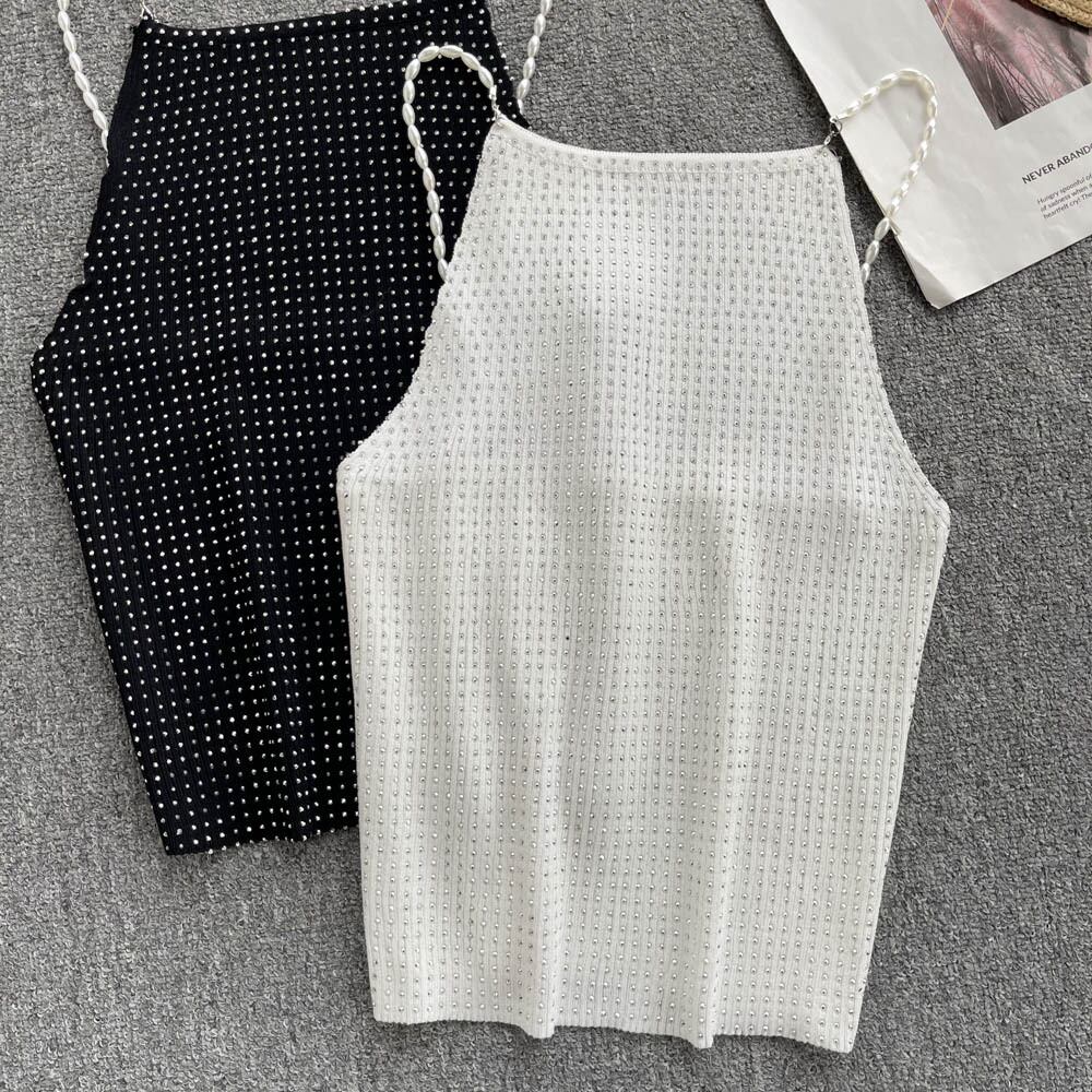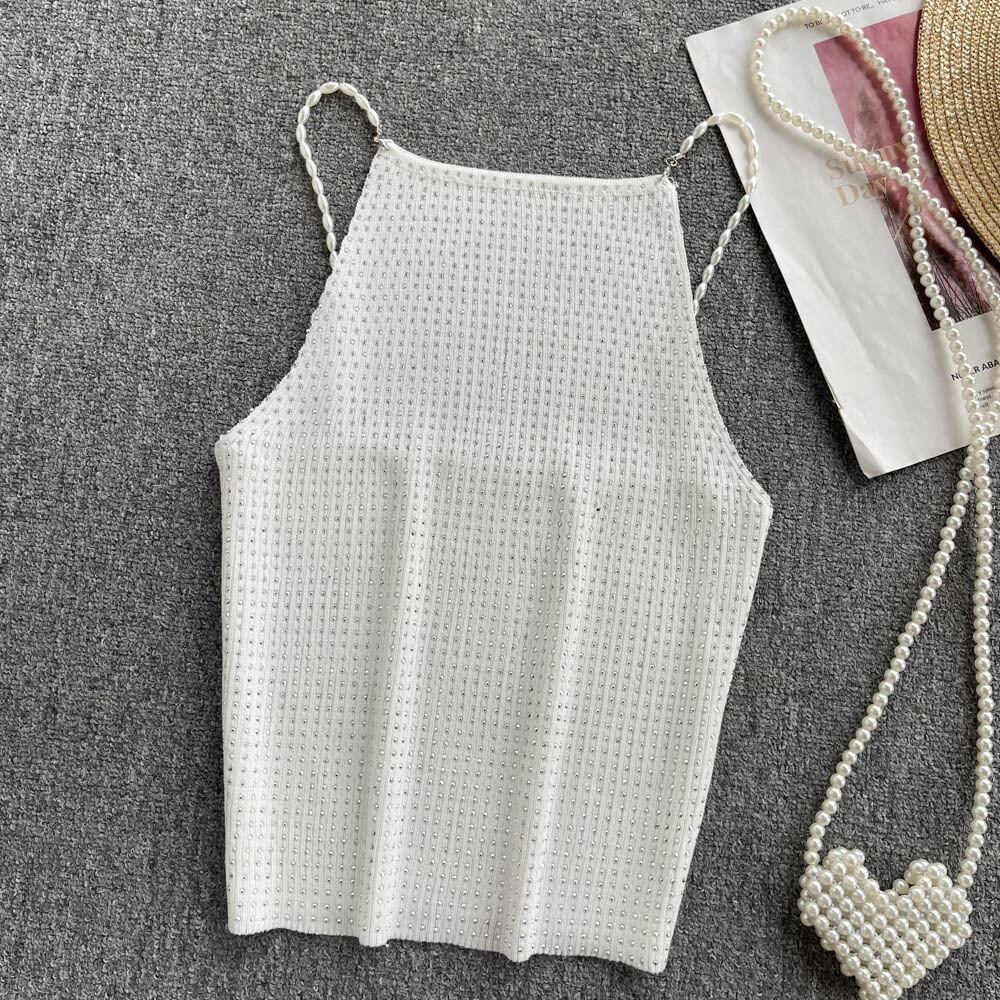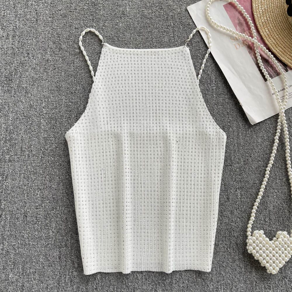 2022 夏ショート ウエスト ビーズ キャミソール バックレス ノースリーブ 甘くてスパイシーなトップス女性 大人ガーリー スウィート キュート カジュアル サマー 夏物 lyxaj9792461880