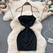 スパイス ニッチ デザイン中空セクシーなホルター ネック ドレス夏の女性のヘップバーン スタイル スリム フィット バッグ ヒップ リトル ブラック ドレス サマー 夏物 lyxaj76021676176