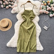 夏フレンチスタイルレトロ中国風新中国風バックルサスペンダースカート女らしさセレブスリットチャイナドレス潮 サマー 夏物 lyxaj7426394649