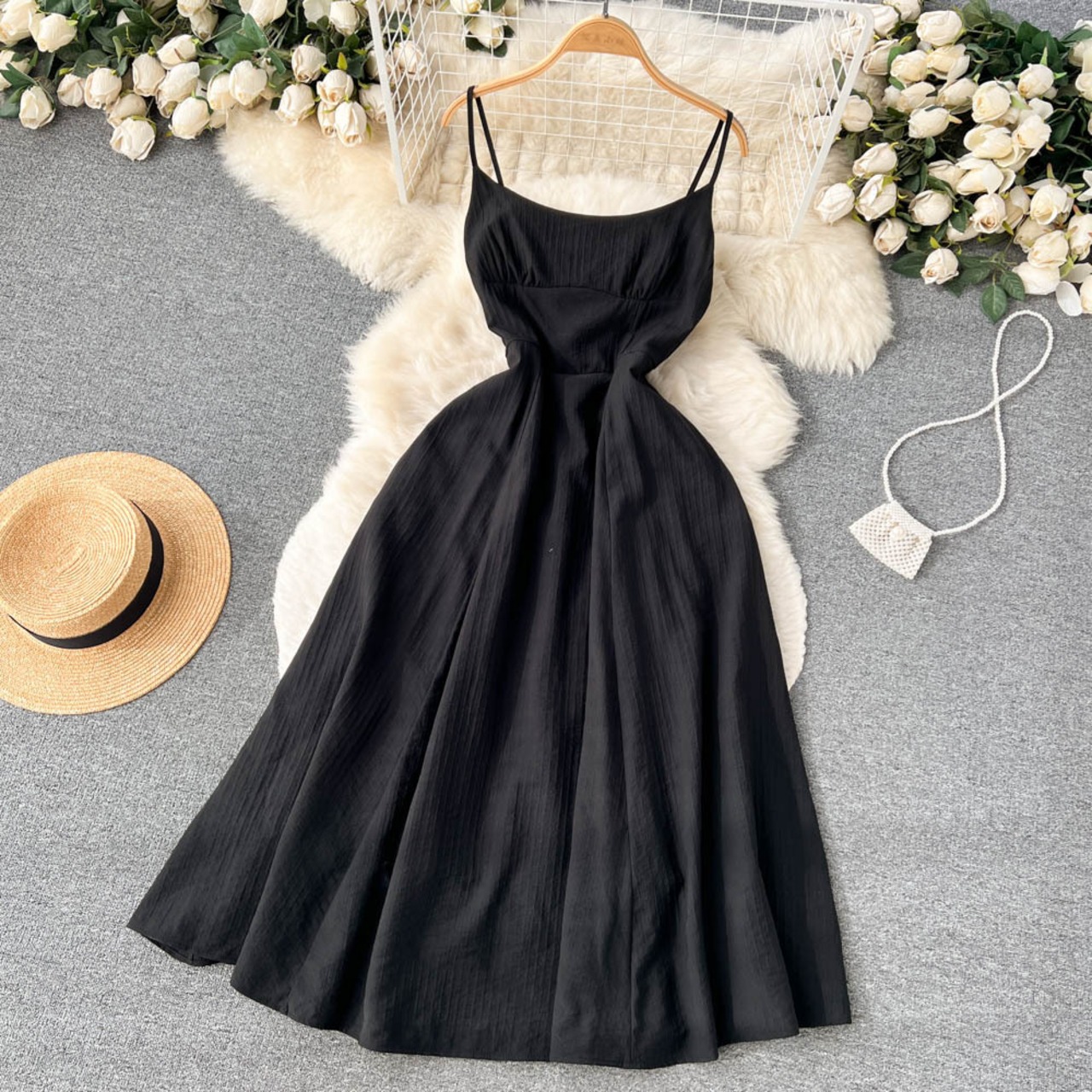 レトロな優しいスタイルのサスペンダースクエアカラーのドレスの女性の夏の質感の高品質の背中の開いた気質の休日の妖精のドレス サマー 夏物 スクウェア lyxaj41914176004