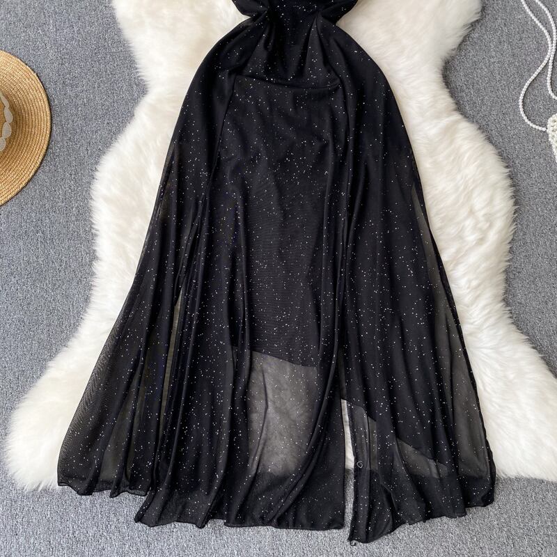 2023 夏フレンチ不規則なスリット k 気質メッシュ妖精ドレス リトル ブラック ドレス サマー 夏物 lyxaj50727717338