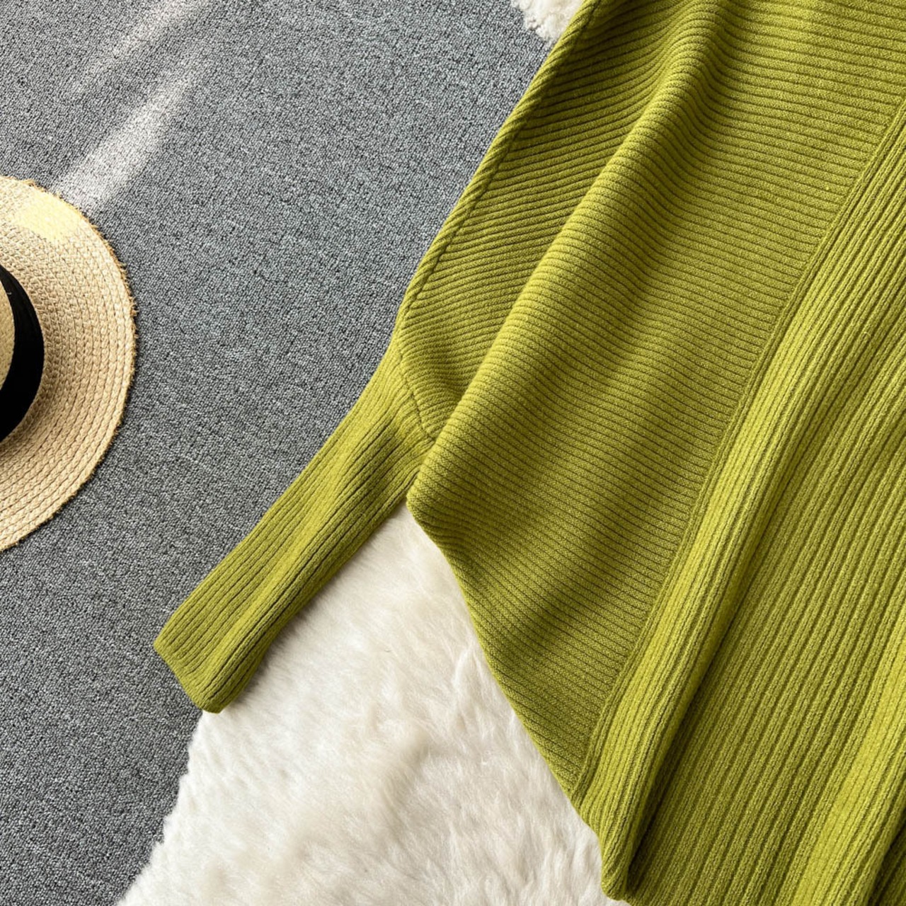秋冬新作イレギュラーなゆったりゆったり長袖ハーフタートルネックセーター+ウエストゴムドレープワイドパンツ2点セット ロング エラスティック 伸縮 オータム 秋物 ウィンター 冬物 lyxaj29035767405