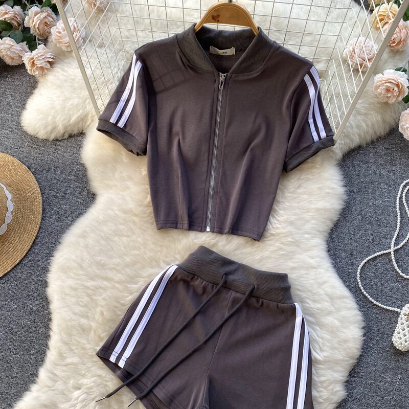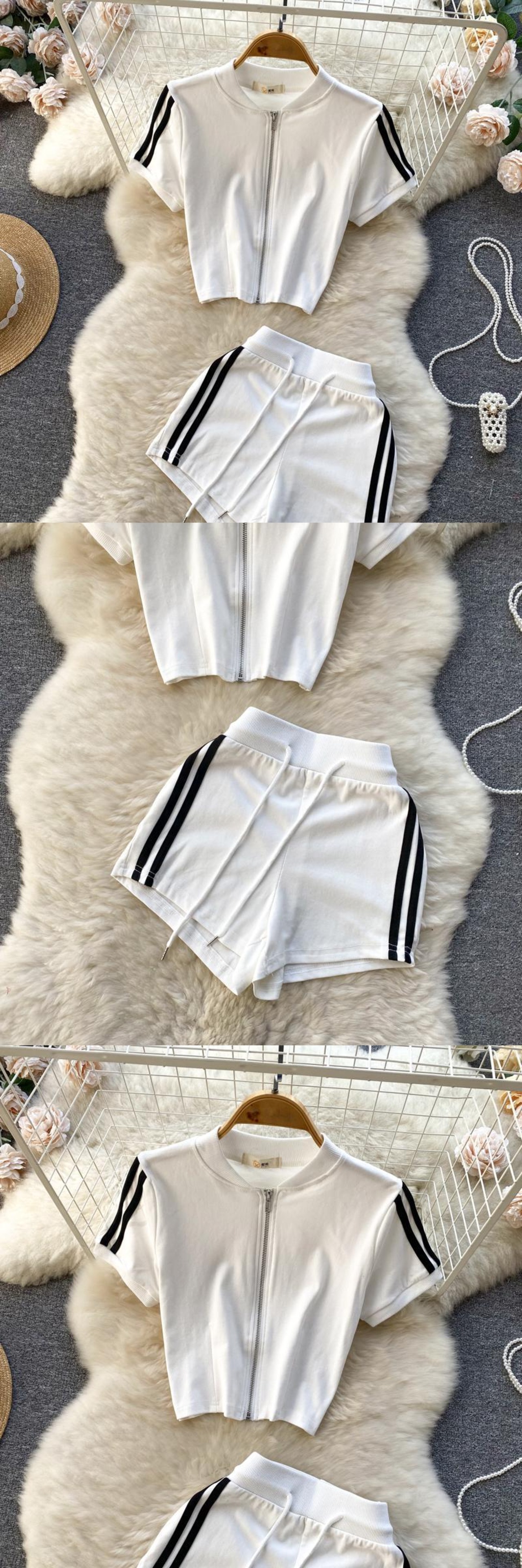 サマードレス 新型 シック スポーツ コントラストカラー スーツ レディース ショートトップ+ハイウエスト 巾着ショートパンツ 2点セット ハイウェスト 夏物 lyxaj84519669799