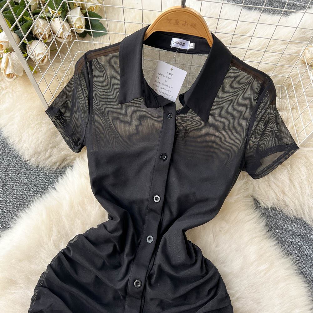 夏のセレブスーツ レディース 半袖ラペル プリーツメッシュワンピース+ワンショルダーチューブトップ ボトムススカート 2点セット サマー 夏物 lyxaj1684920285