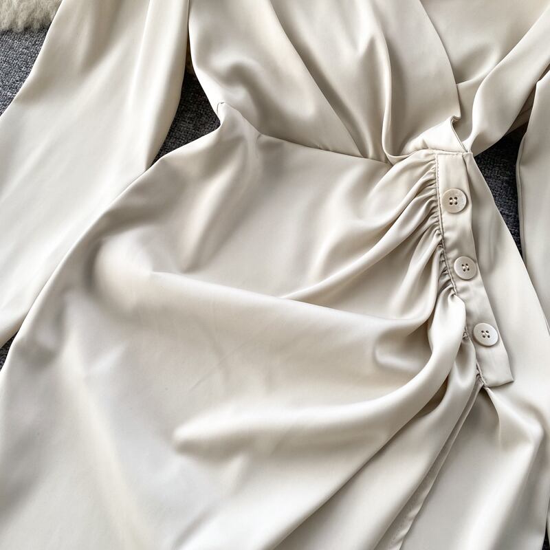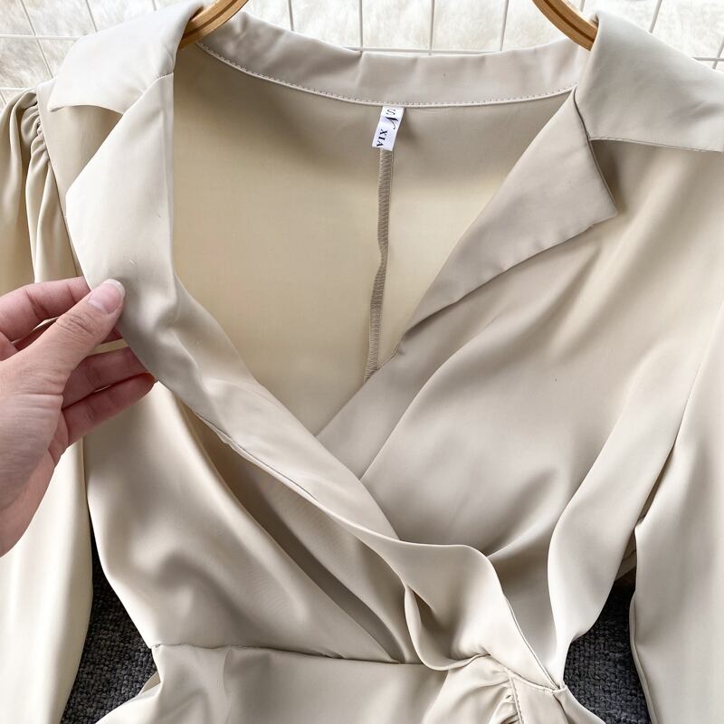 スーツラペルシックなシャツドレス女性の秋の気質ひだ不規則なスリットウエストバッグヒップロングスカート オータム 秋物 lyxaj72320218092