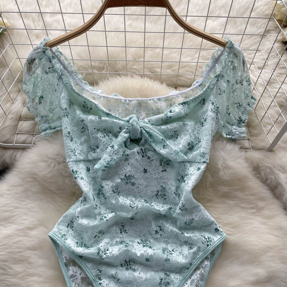 夏の純粋な欲望風セクシーな甘い弓半袖スリムウエスト高 k プリントジャンプスーツトレンディ リボン 大人ガーリー スウィート キュート カジュアル サマー 夏物 ピュア lyxaj90444484062