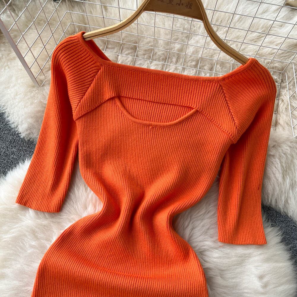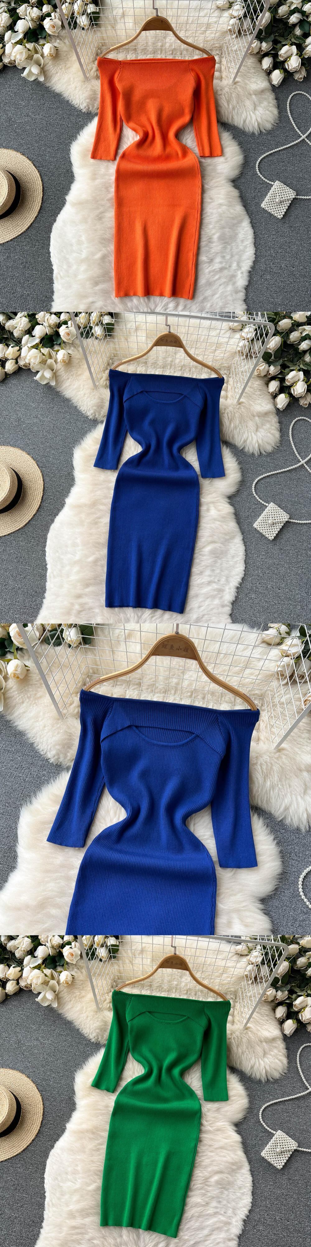 甘くてエレガントなオフショルダーニットドレス2022夏の新デザイン中空アウトスリムフィットスリムラップヒップボトムスカート 大人ガーリー スウィート キュート カジュアル サマー 夏物 lyxaj154667774