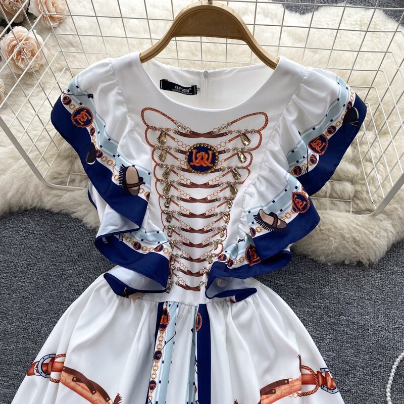 -終わりの冷たい風ウエスト痩身プリント ラウンド ネック ドレス夏の女性の海辺の休暇ミドル丈スカート潮 サマー 夏物 Oネック lyxaj61720694596
