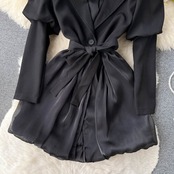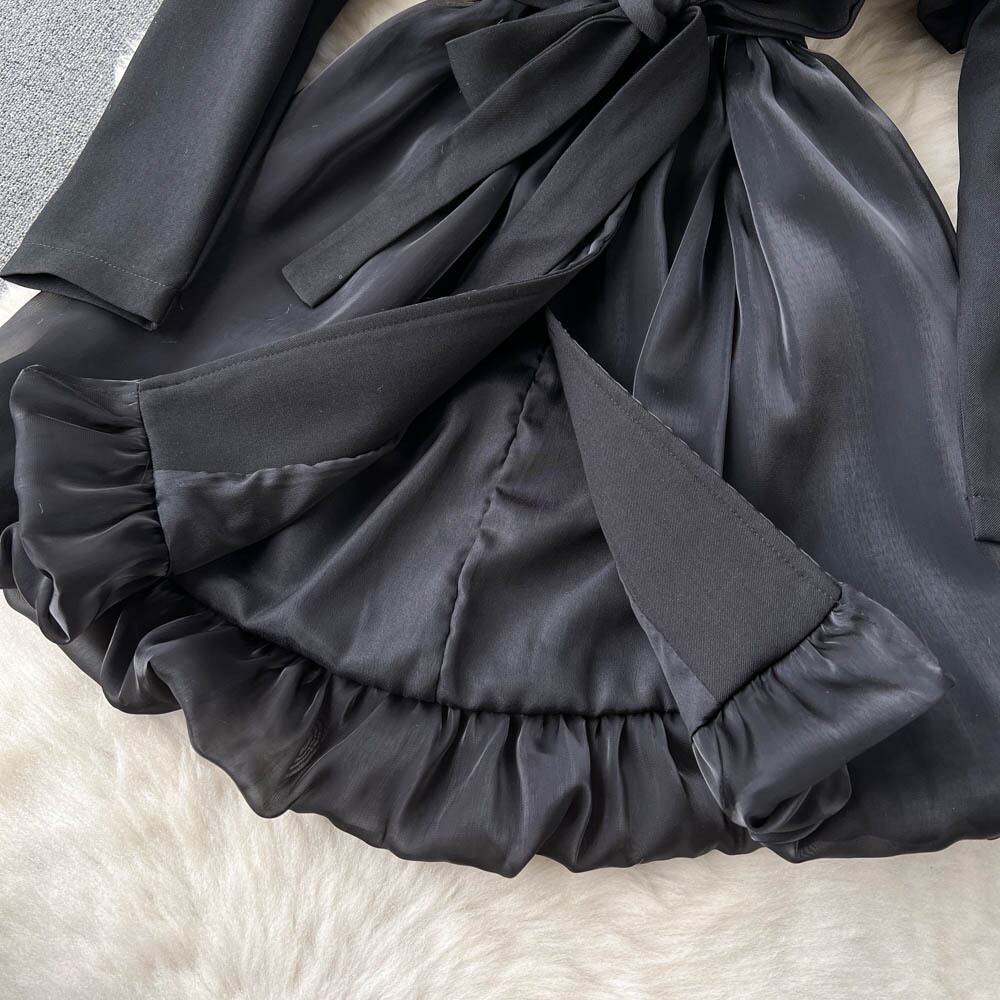 春の新デザインセンス気質セレブスーツ襟ちょう結びオーガンジーフェイクツーピースドレス女性リトルブラックドレス リボン スプリング 春物 lyxaj26559392807