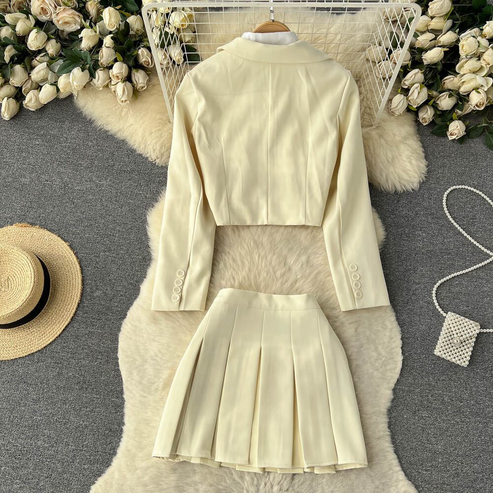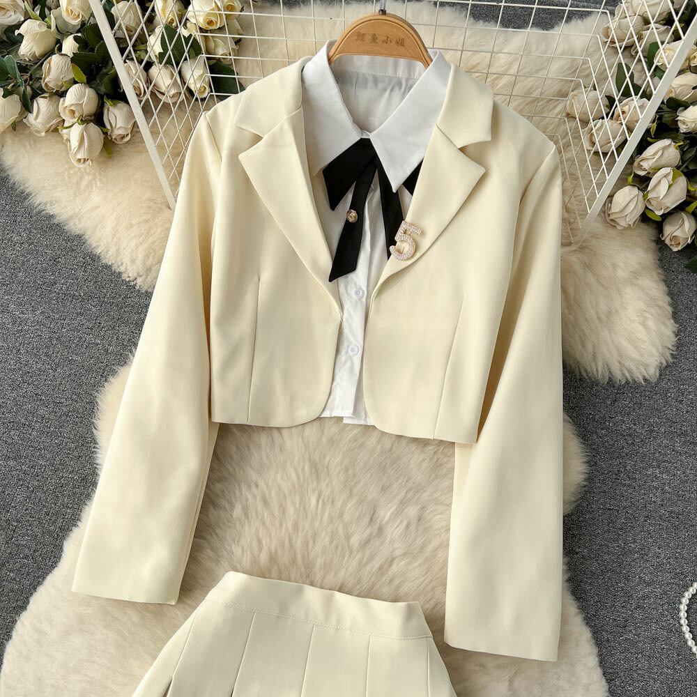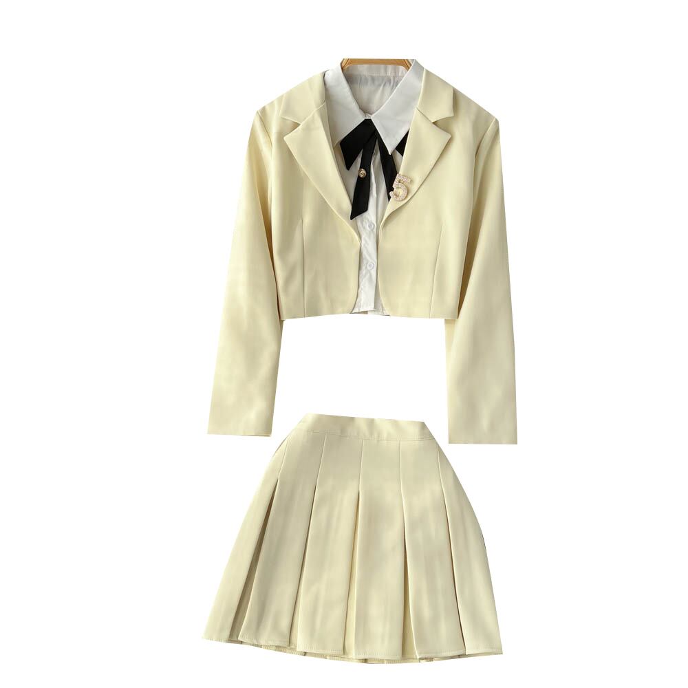 春夏の甘い大学スタイルのスーツの女性の白いシャツ + 襟カーディガン ジャケット + プリーツ スカート スリーピース トレンディ ホワイト 大人ガーリー スウィート キュート カジュアル スプリング 春物 サマー 夏物 lyxaj14823976614