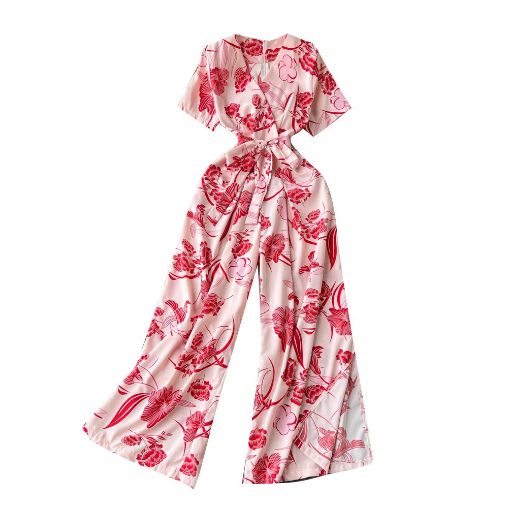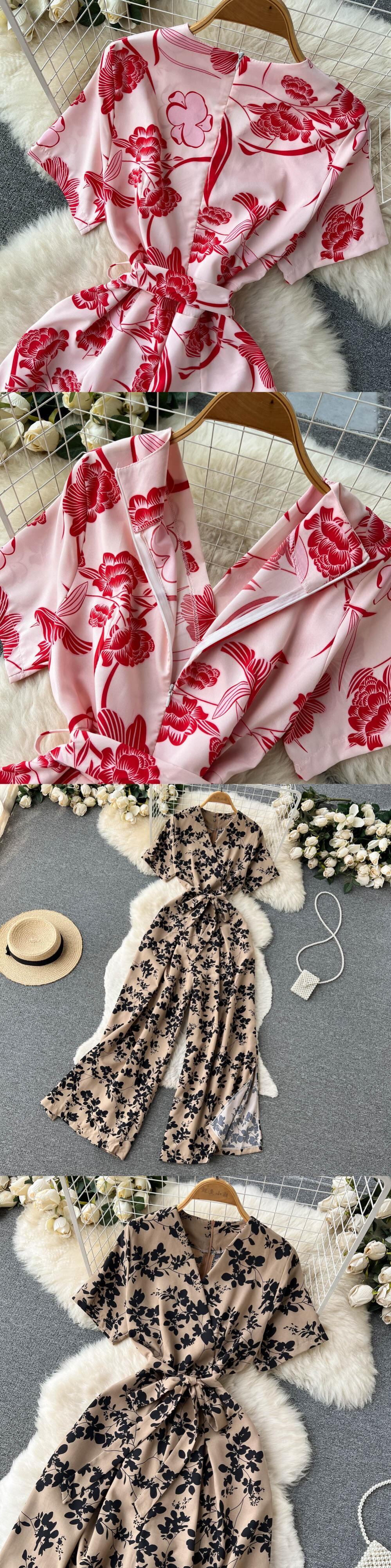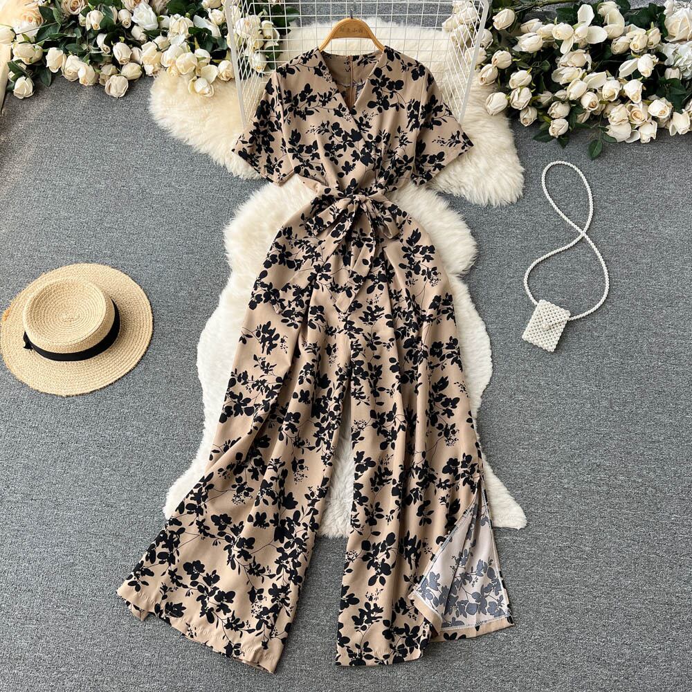 ヨーロッパとアメリカのスタイルのファッションプリント半袖ジャンプスーツ女性の初秋ホリデースタイルのズボンシックなハイエンドジャンプスーツトレンディ オータム 秋物 ヨーロピアン lyxaj36608032082