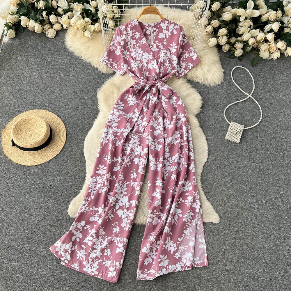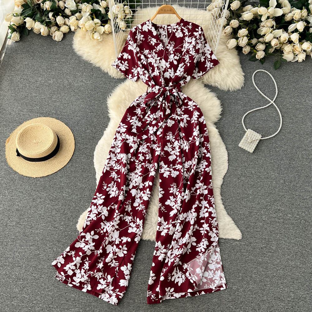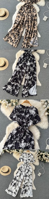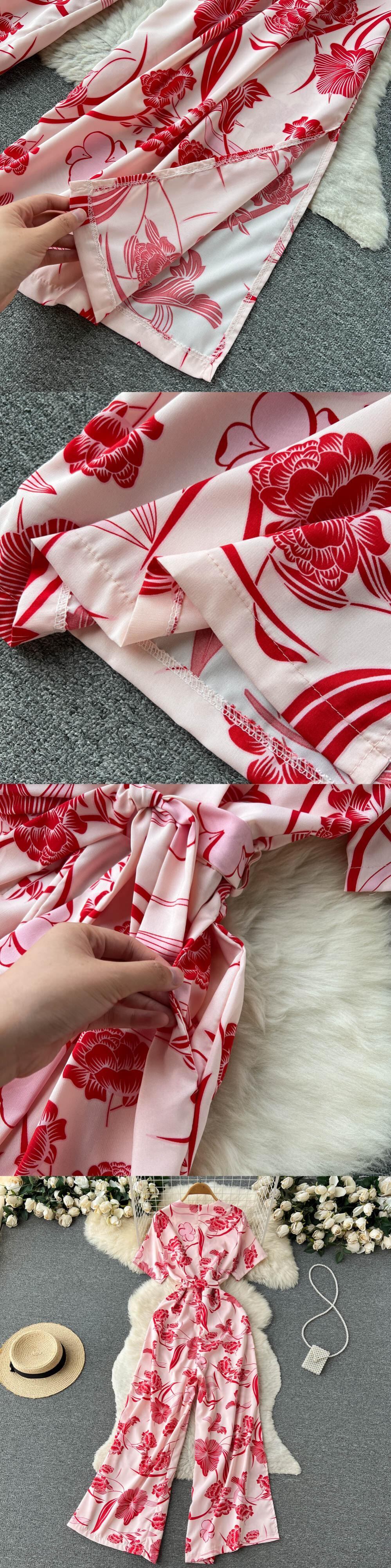 ヨーロッパとアメリカのスタイルのファッションプリント半袖ジャンプスーツ女性の初秋ホリデースタイルのズボンシックなハイエンドジャンプスーツトレンディ オータム 秋物 ヨーロピアン lyxaj36608032082