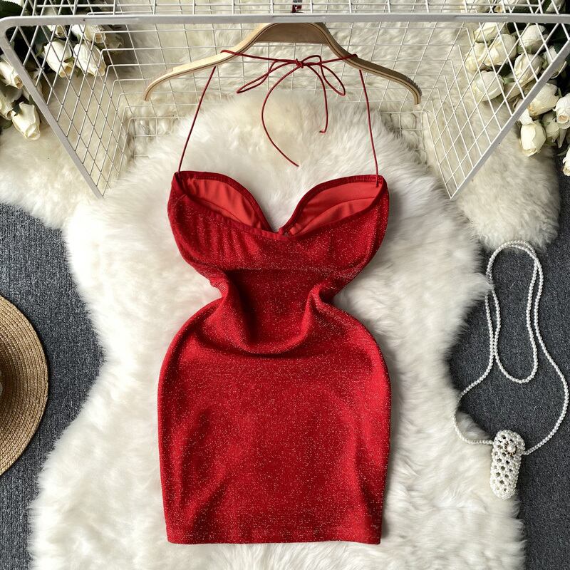 ホルターネックワンショルダーセクシーなローカットハイエンドドレスバッグヒップドレス女性チューブトップウエスト気質セレブスカート lyxaj85681599075