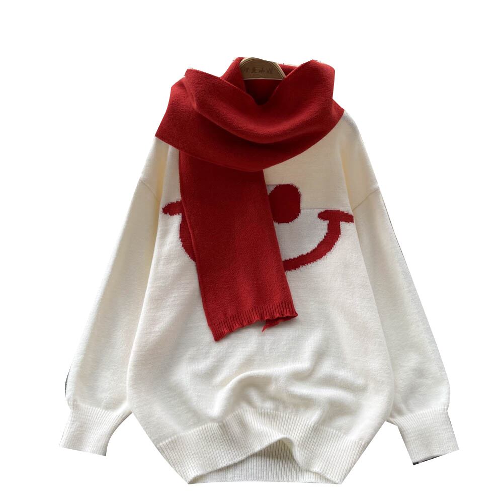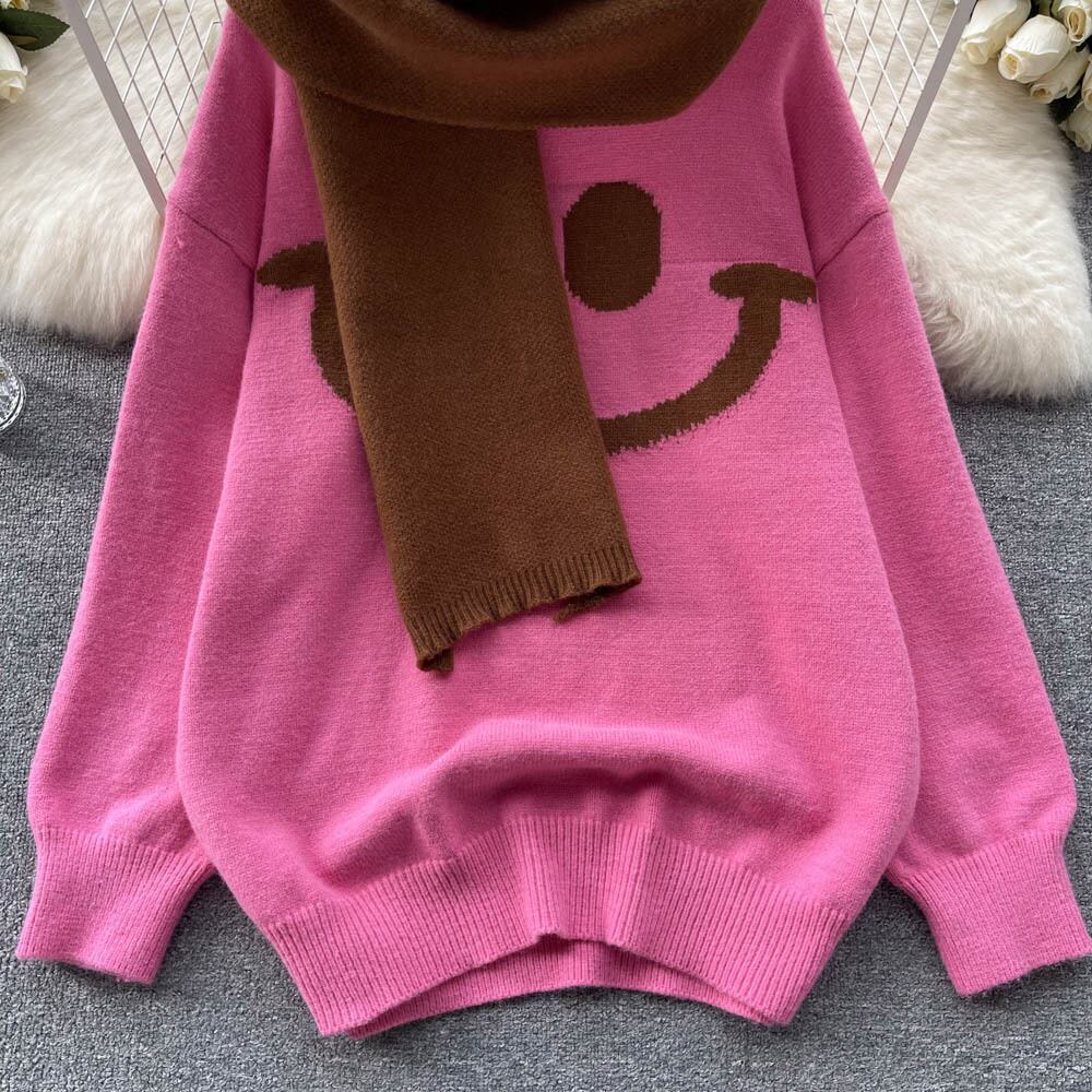 シック レトロ かわいい 笑顔 プリント ゆったり 怠惰風 ラウンドネック オールマッチ 薄手 セーター レディース マフラー 潮 大人ガーリー スウィート キュート カジュアル Oネック lyxaj68365213831