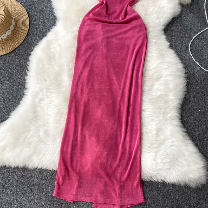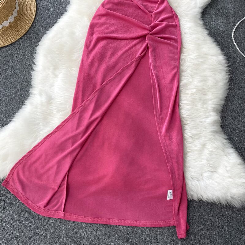 スパイスが綺麗なサスペンダーワンピース 夏 レディース 小さめ デザイン センス ニッチ プリーツ スリット バッグ ヒップワンピース サマー 夏物 lyxaj6865477093