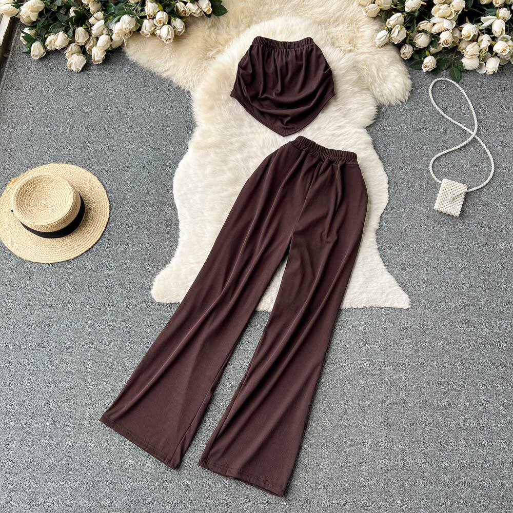 夏のセクシーなスーツの女性の不規則な弾性チューブ トップ + カジュアルなドレープ ワイド パンツ 2 点セット エラスティック 伸縮 サマー 夏物 lyxaj17036441504