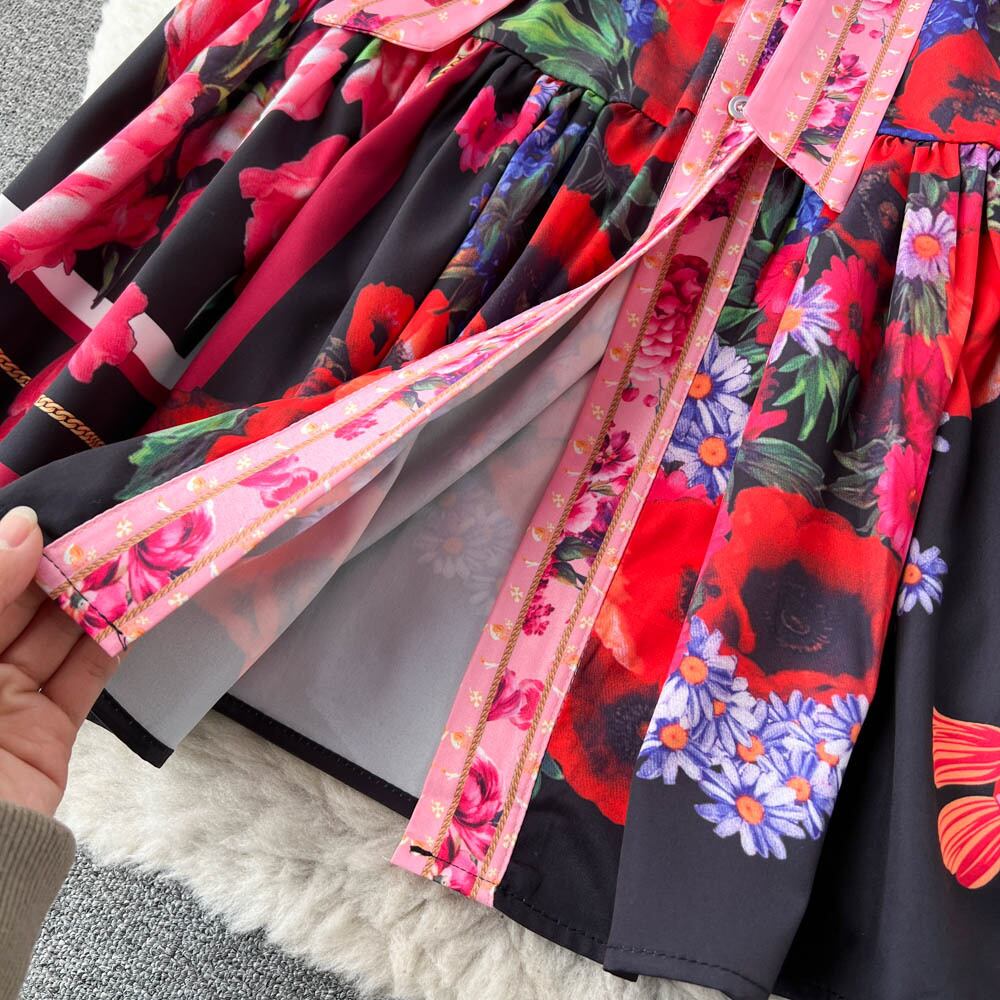 春の新作欧米ファッション水玉長袖ステッチレトロミッドレングススタンドカラープリントドレスプリンセススカート ロング スプリング 春物 ヨーロピアン lyxaj69050595414