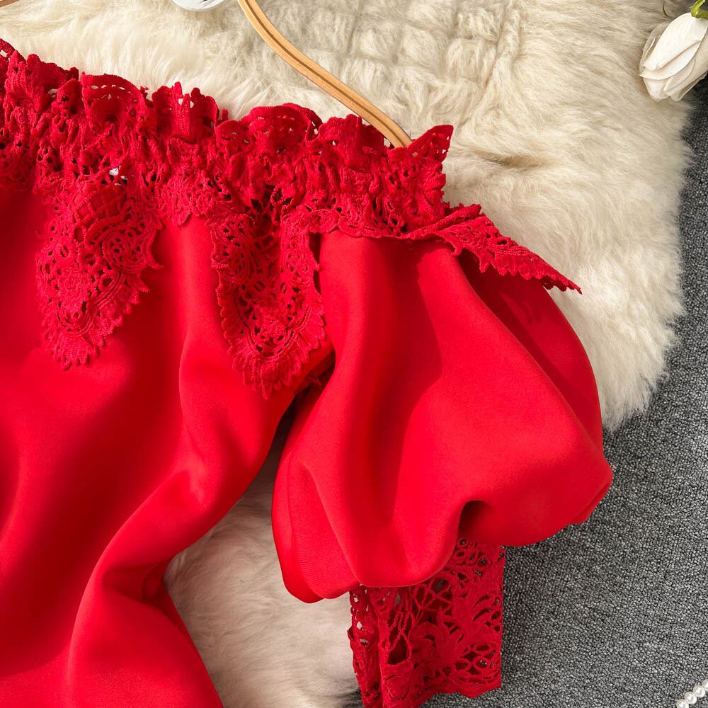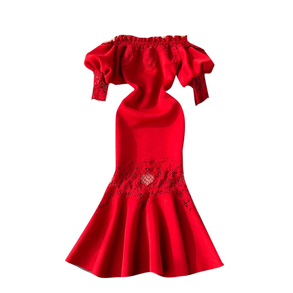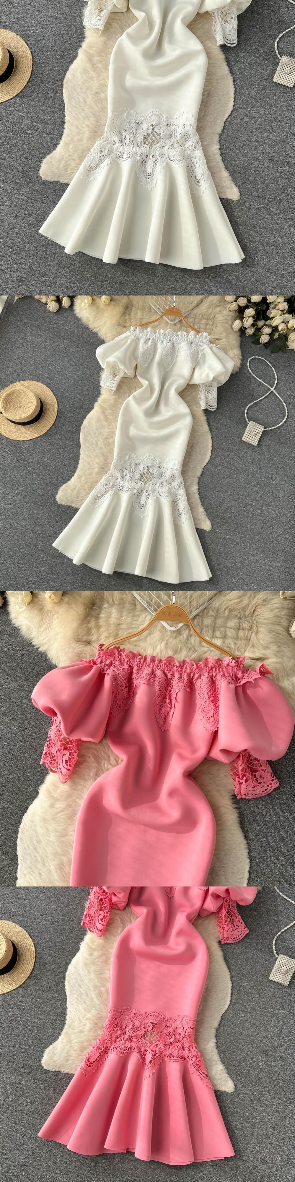 2022 秋と冬のレトロなワンショルダーレースドレス女性のハイエンドパフスリーブマーメイドドレススカートバッグヒップロングスカート オータム 秋物 ウィンター 冬物 lyxaj454907484